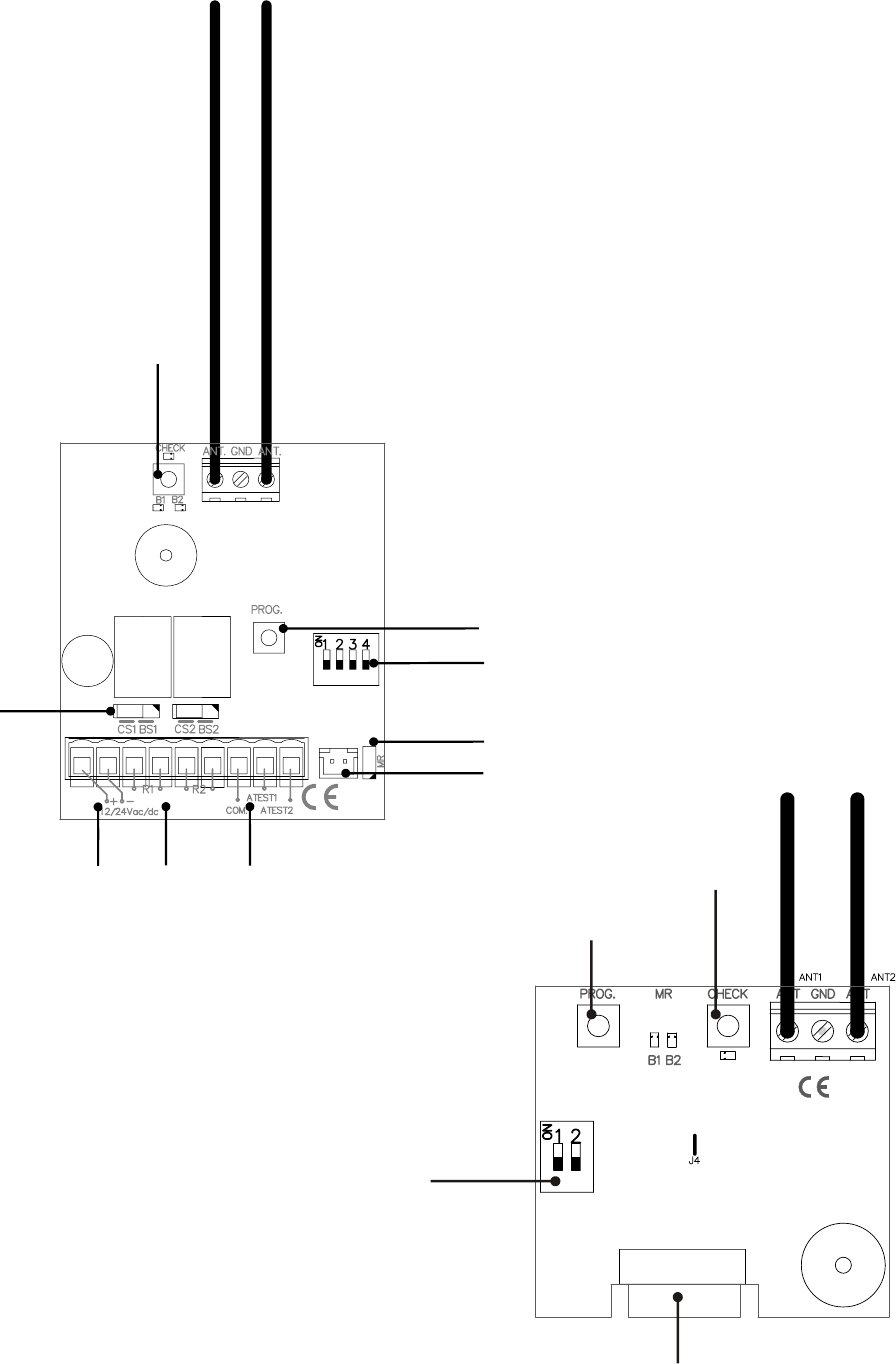 power cables to the terminals of the printed circuit, following the indications of the connections diagram. Store transmitters.