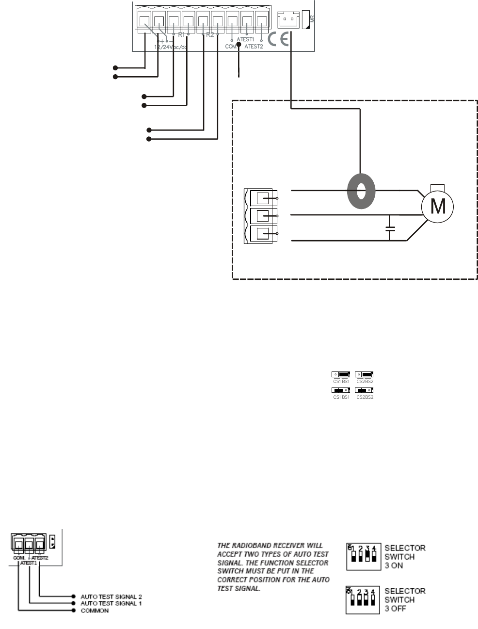 The auto test signal is sent from the door/gate control panel and activates the output from the RadioBand receiver. When the
