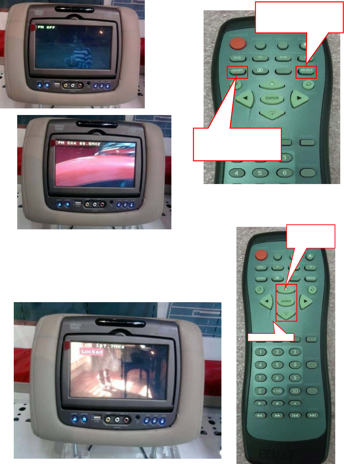 Sound Around (ON / OFF) button to turn the FM modulator on. The screen will now display