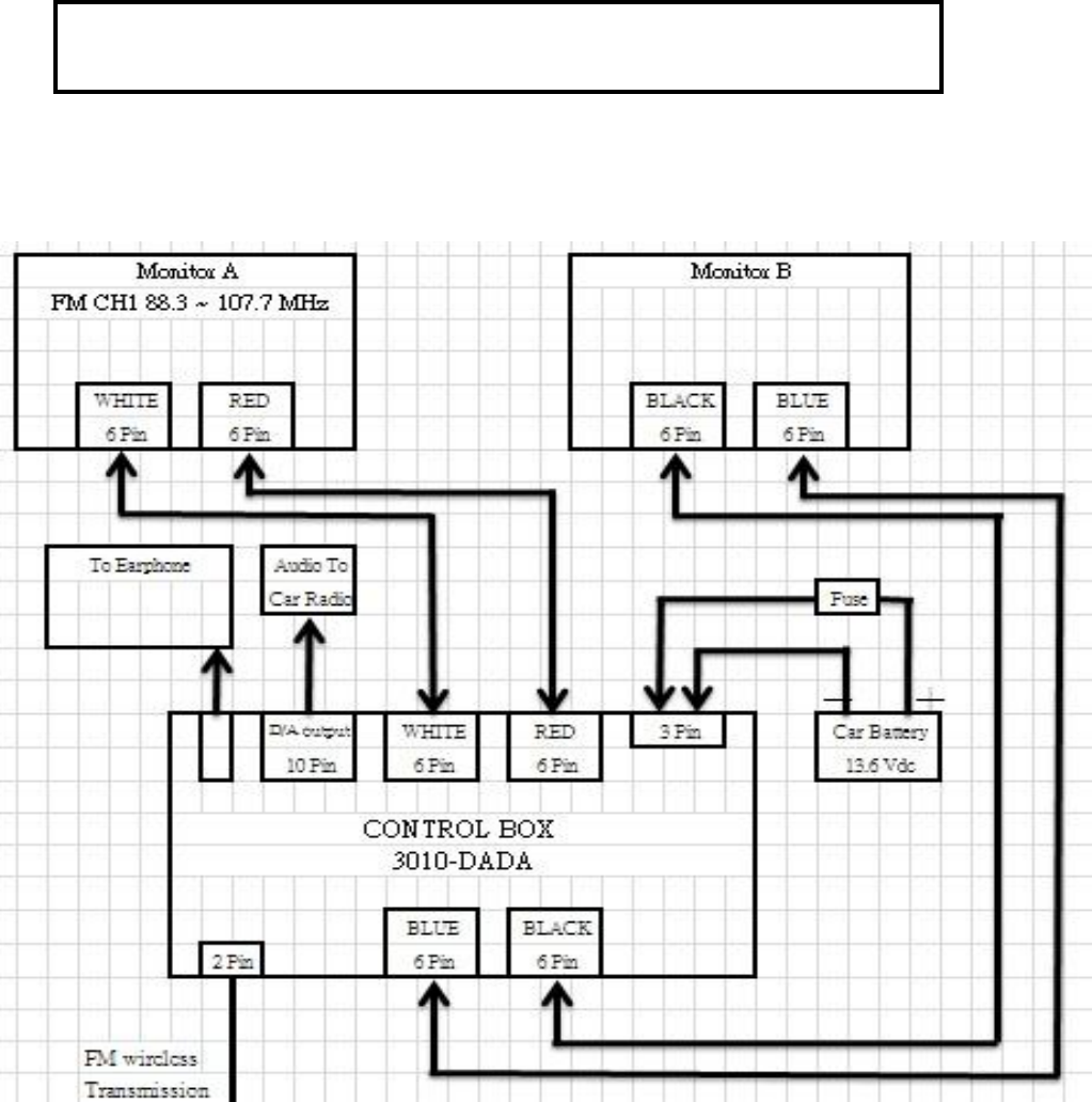 the vehicle stereo via the 3010-DADA Control Box FM Transmitter. To view this input press