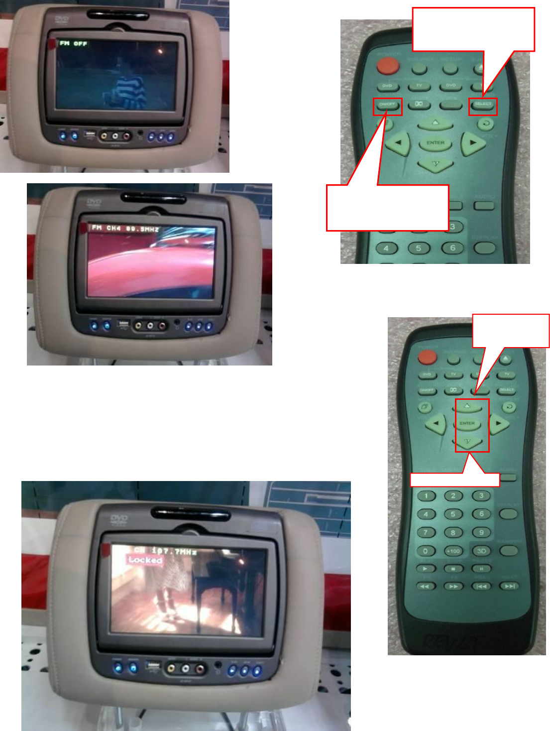 Sound Around (ON / OFF) button to turn the FM modulator on. The screen will now display