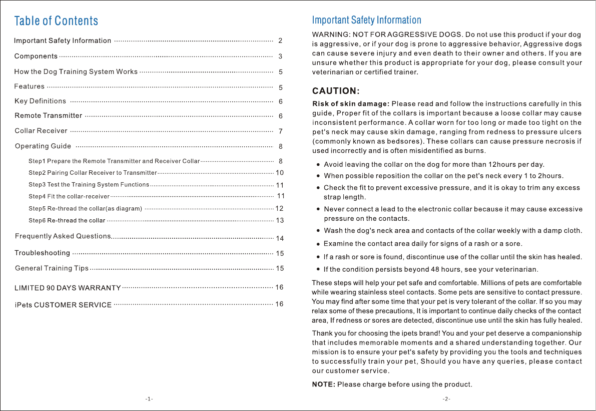 SHENZHEN JIAYIYANG ELECTRONICS CO., LTD Remote Pet Training Collar for Multi-Dogs Users Manual