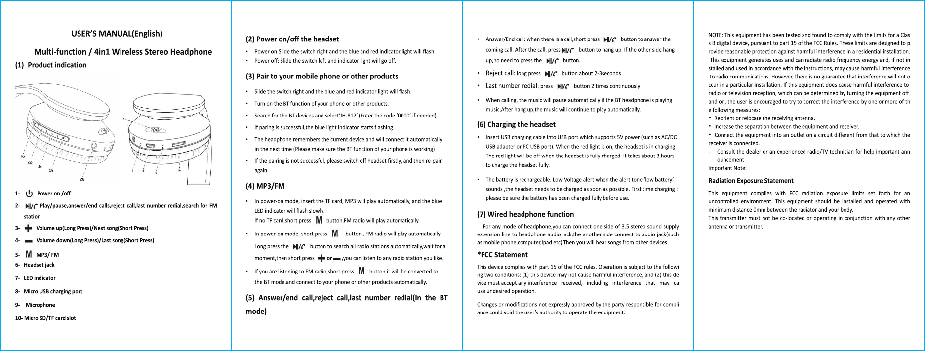 SHENZHEN JIUHU TECHNOLOGY CO., LTD Bluetooth earphone JH 812 manual 20180824 English