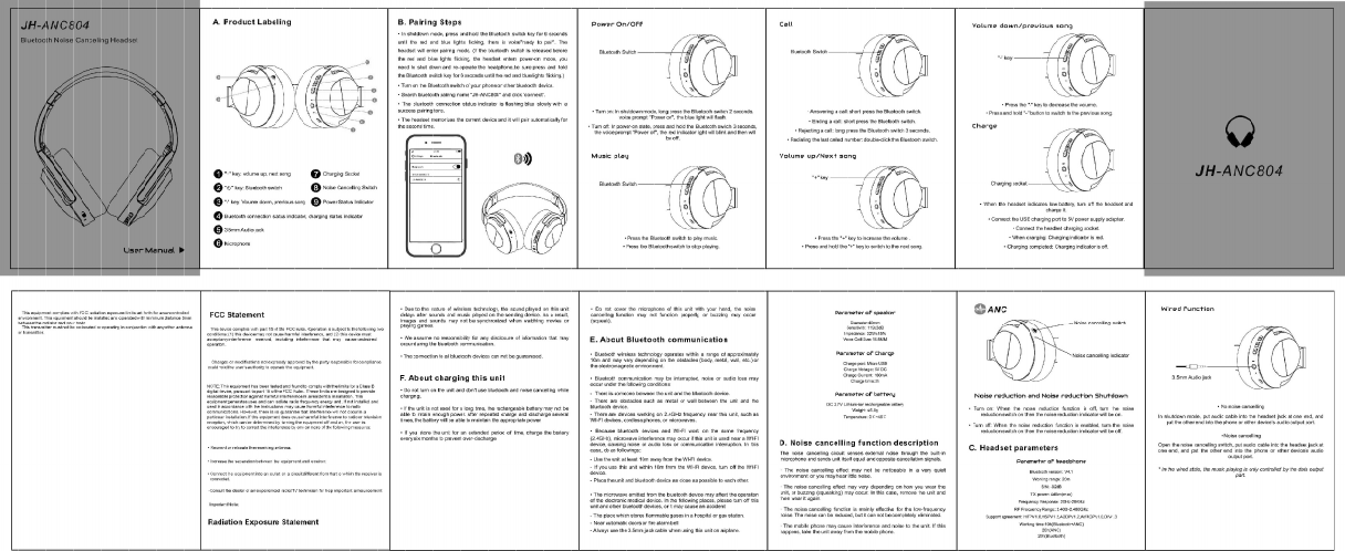 JIUHU TECHNOLOGY JH-ANC804 Bluetooth noise-reducing headphones User Manual