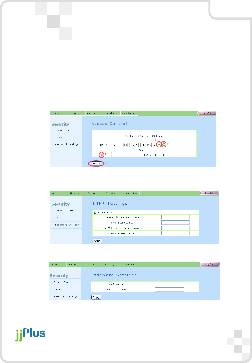 a. Add : Add a MAC address into Access list.