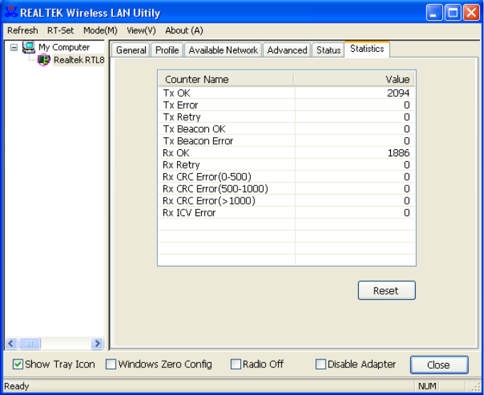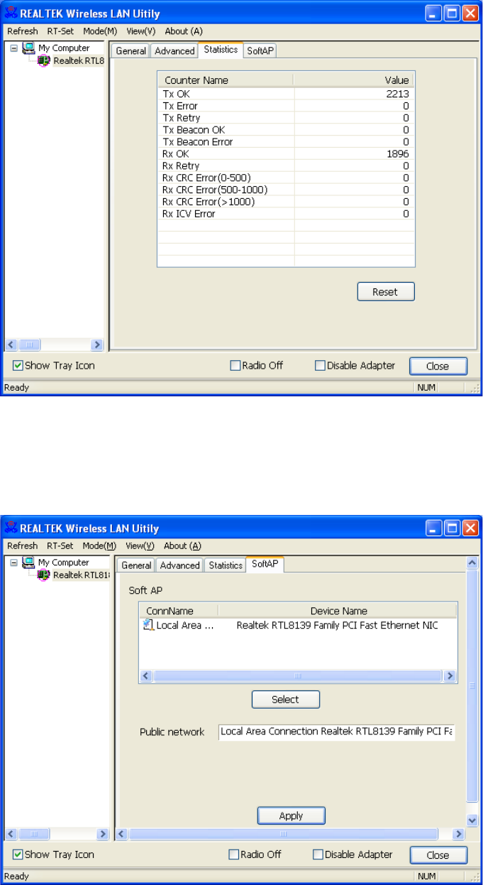 See this tab to show the transmission activity record. Clicking the “Reset” button