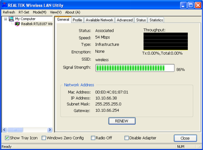 network adaptor supports the IEEE 802.11b/g wireless standards. With