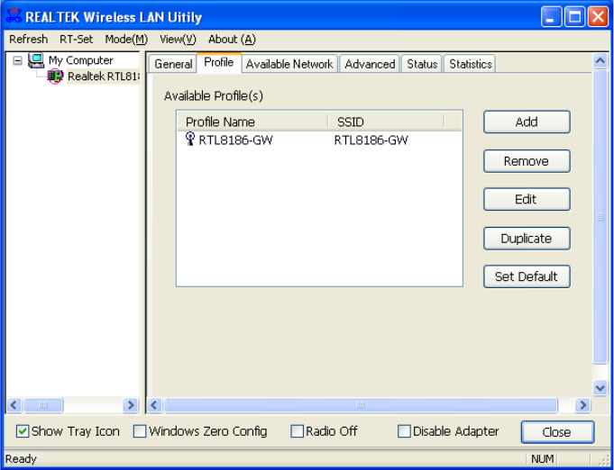 The Profile tab lists the preferred connections. You can click the buttons beside to