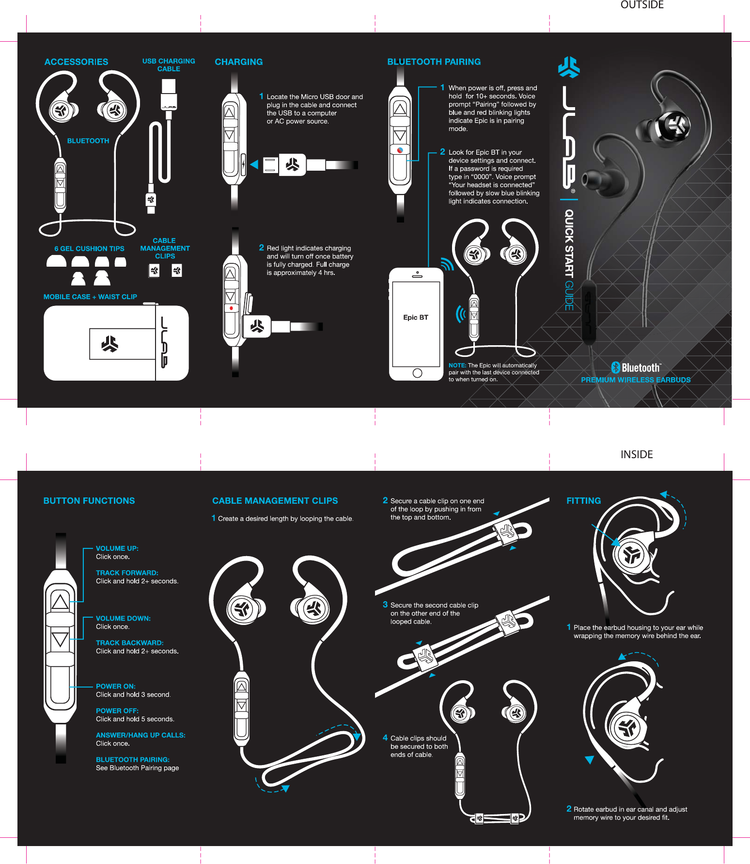 JLab JLABEPICBT EPIC BT EARBUD User Manual Epic Bluetooth Quickstart