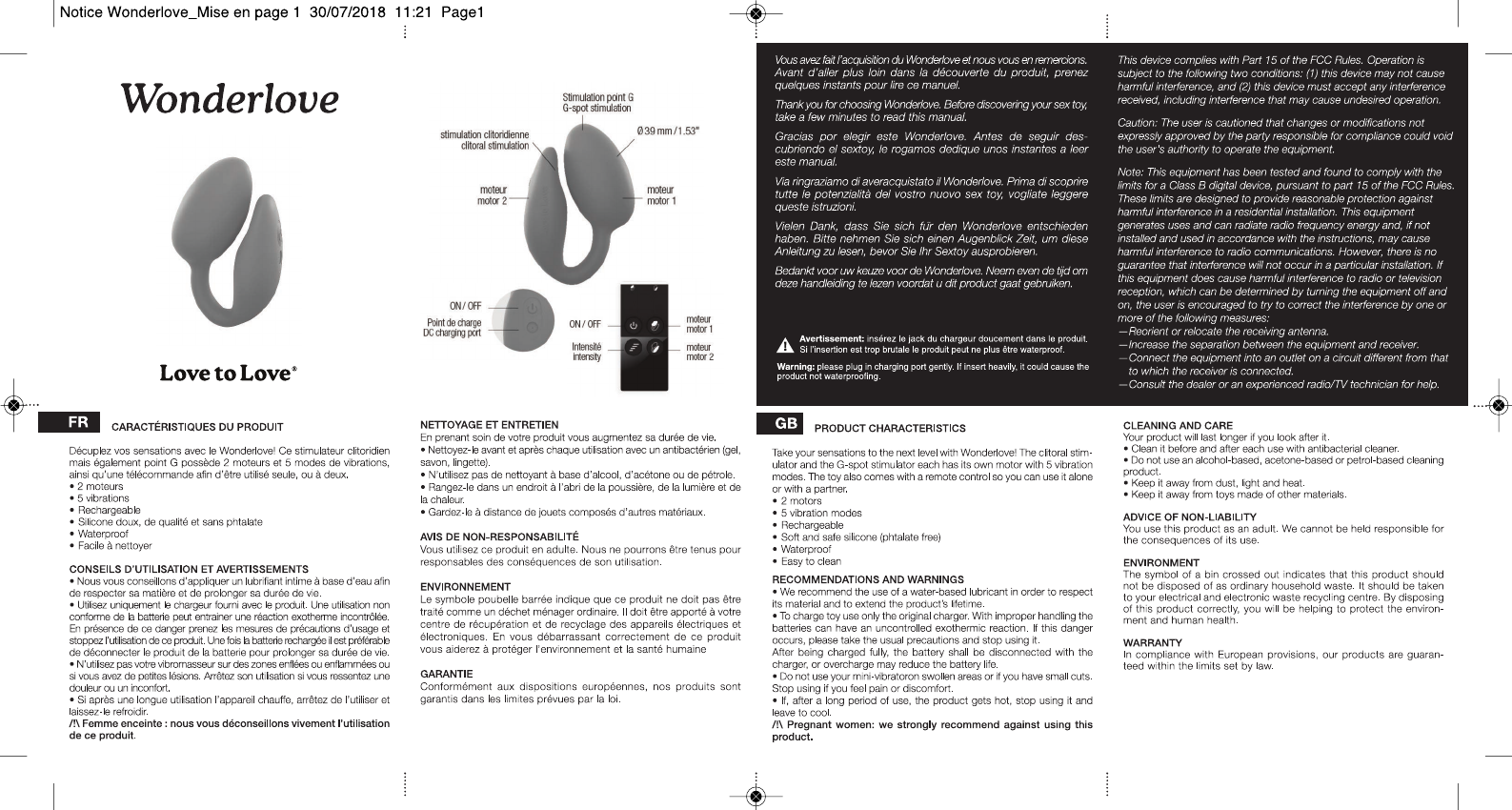 JM Sunflower Limited. Wonderlove remote control Notice Wonderlove R1 warning e