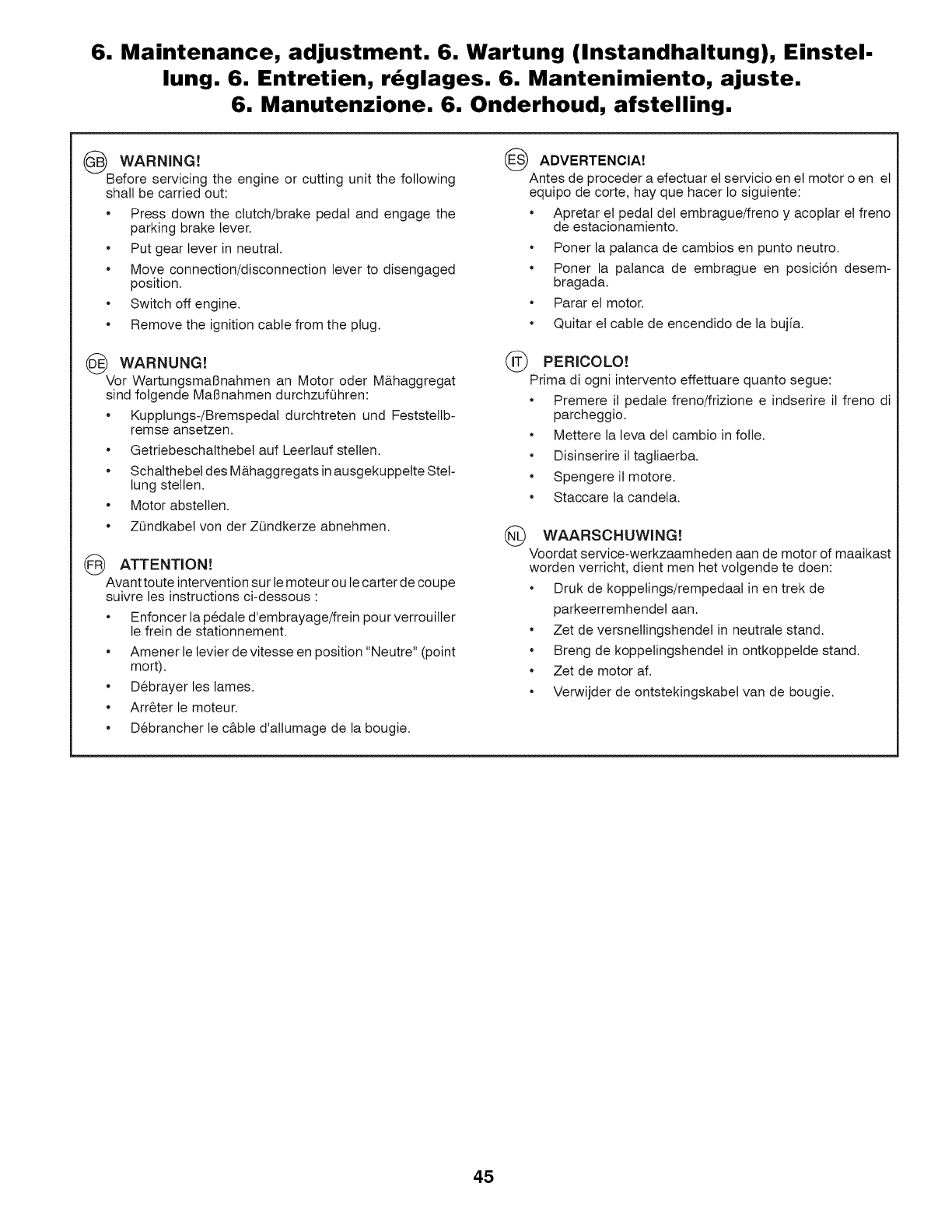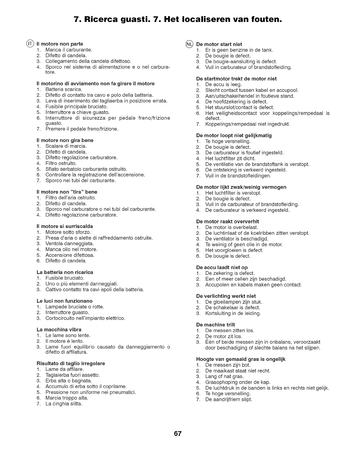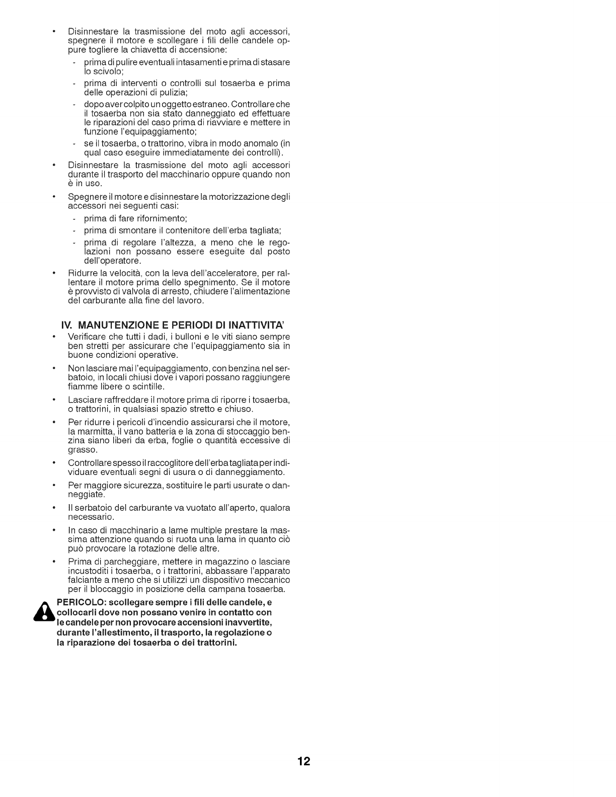 della falciatrice. Per le operazioni di pulizia, non utilizzare