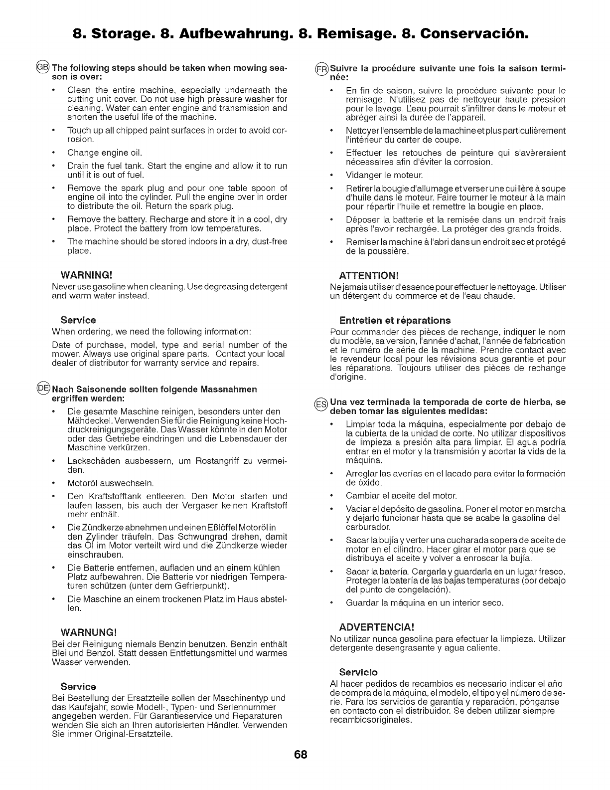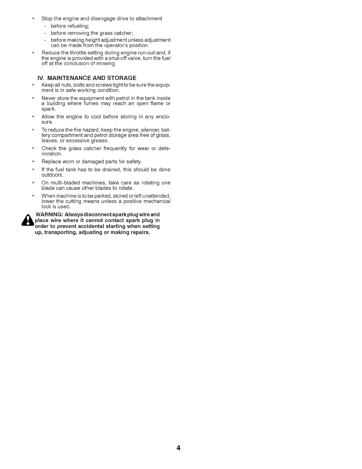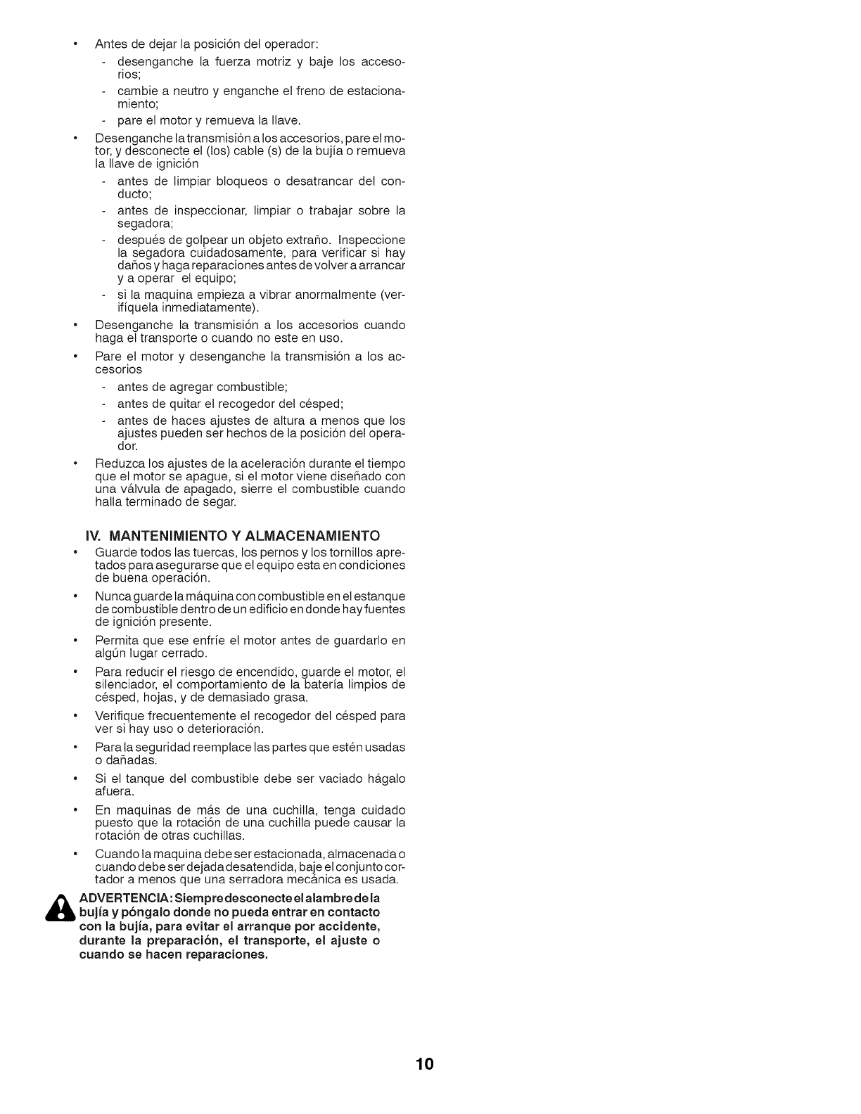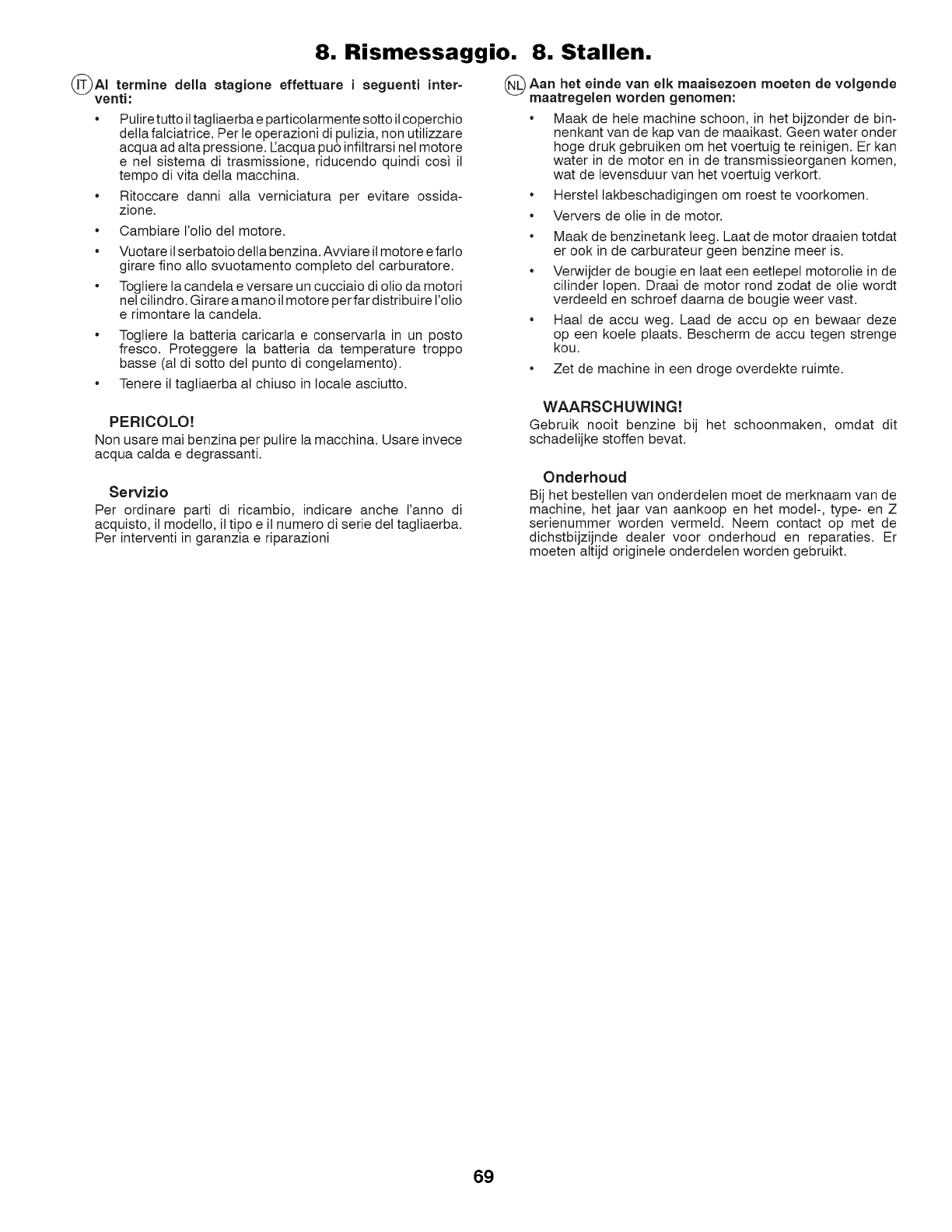 • Tenere il tagtiaerba al chiuso in locale asciutto.