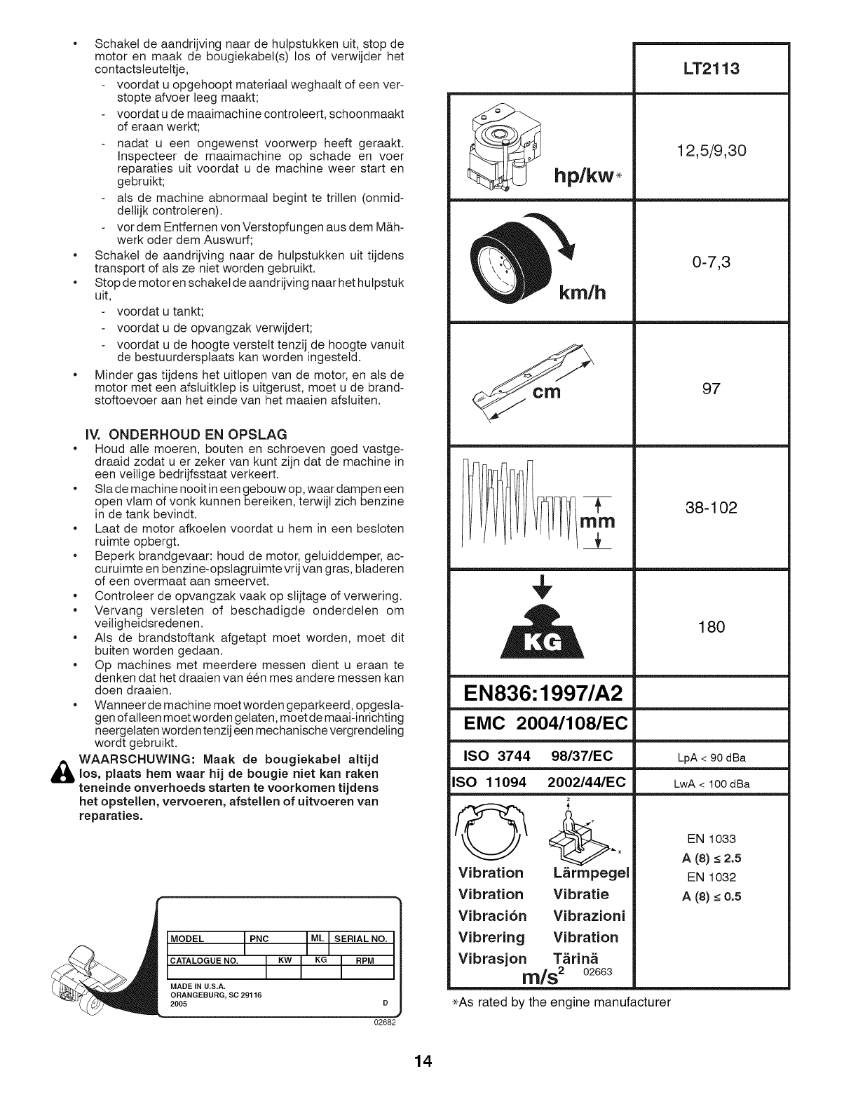 acquisto, il modello, il tipo e il numero di serie det tagliaerba.