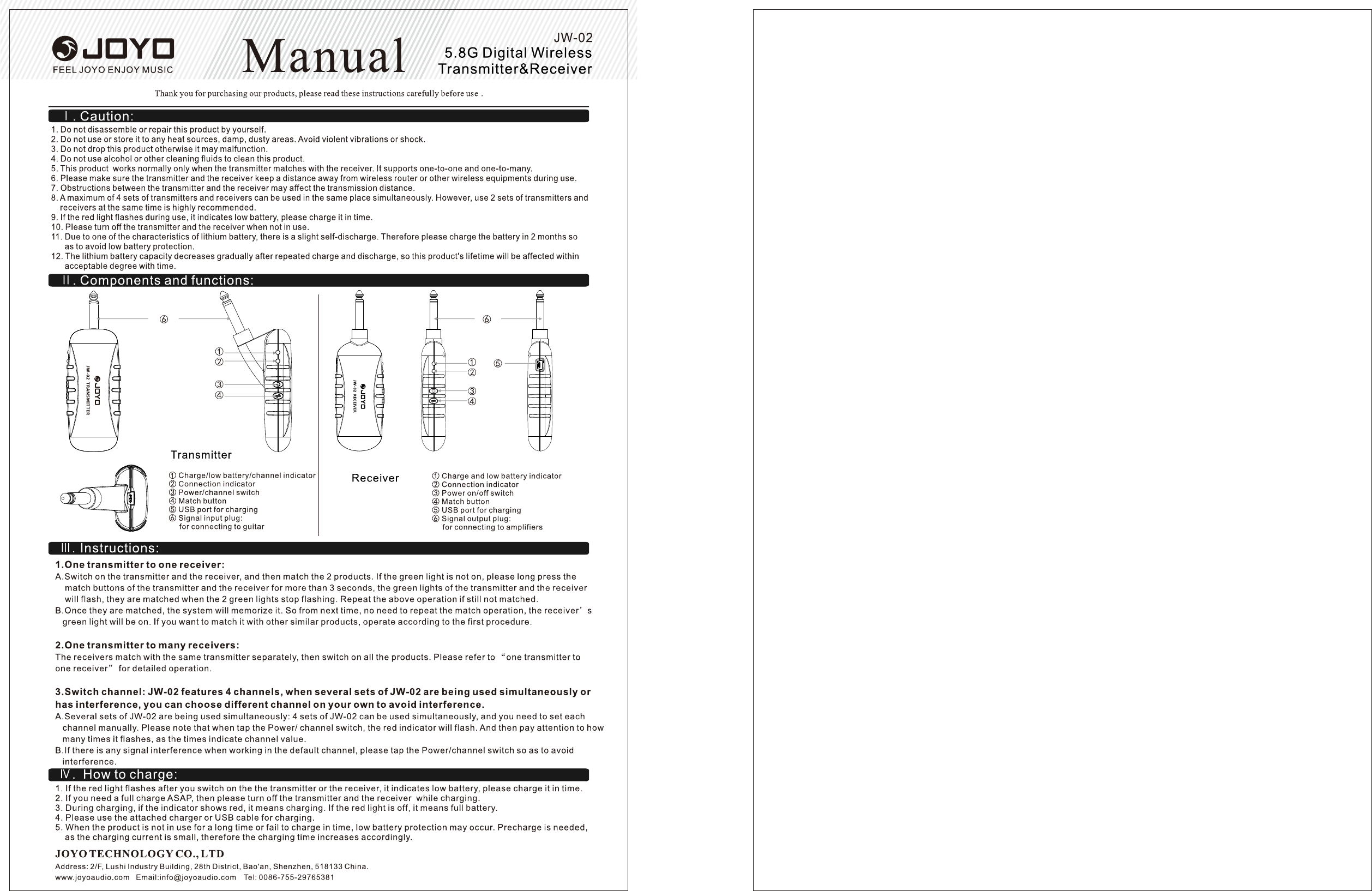 JOYO TECHNOLOGY CO., LTD 5.8G Digital Wireless Transmitter JW 02 2017 9 7