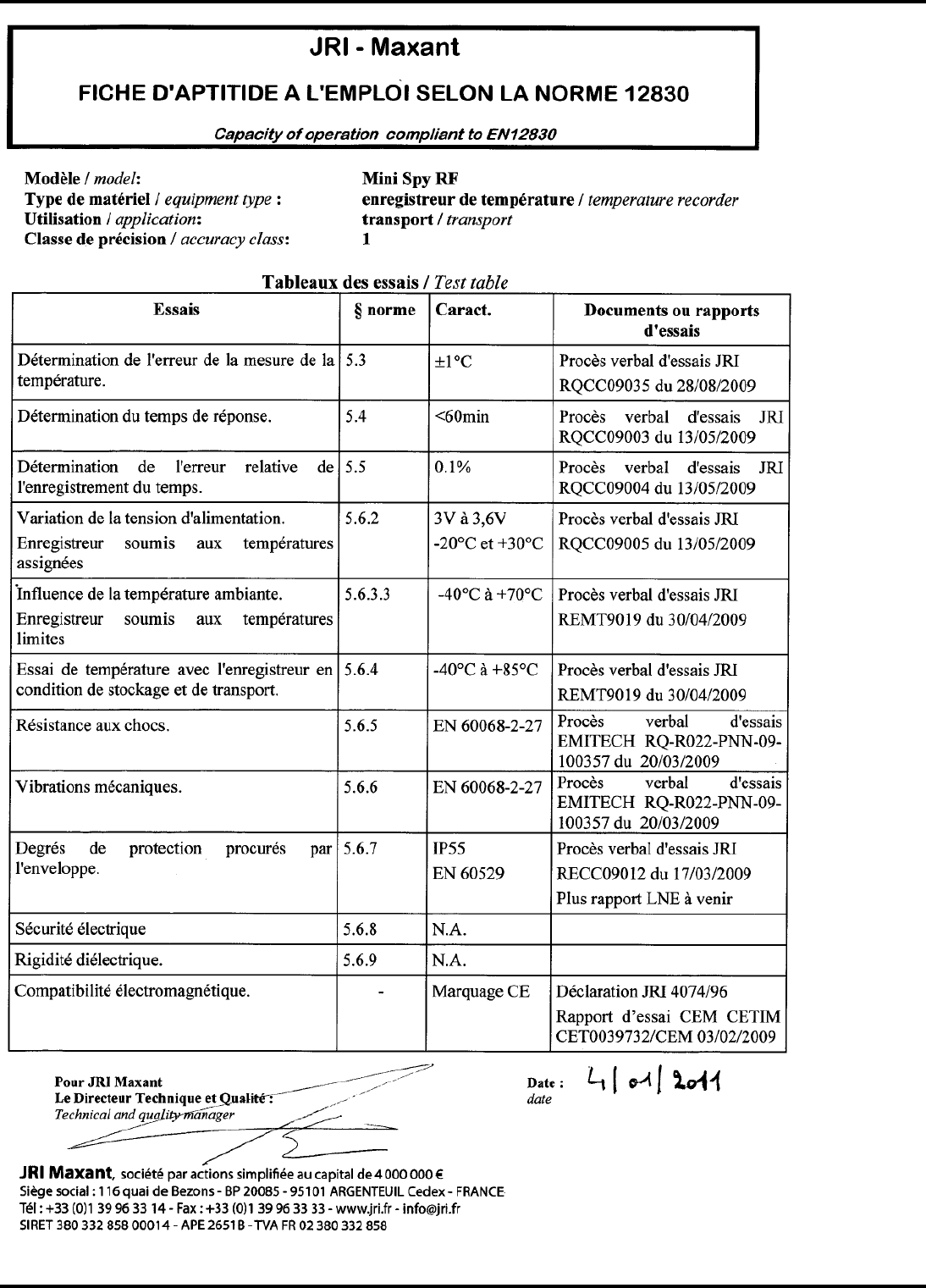 Félicitations, vous venez de recevoir le Mini SPY RF GREEN. Cet appareil équipé de 1 Sonde intégrée permettant