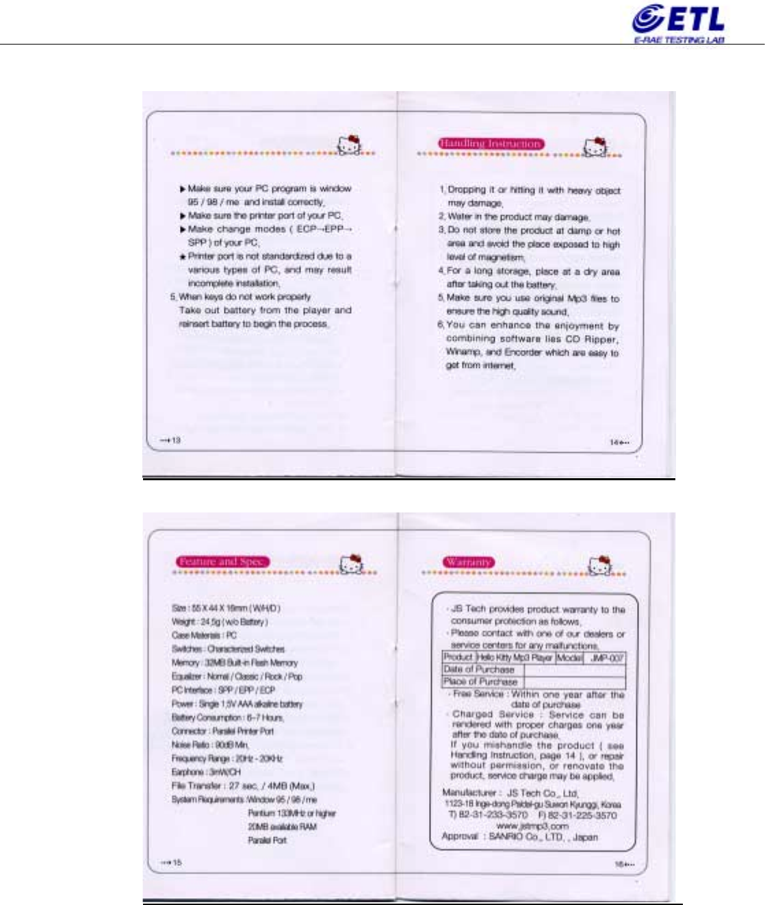 EMC Testing Lab Tel:(02)858-0786 Fax:(02)858-0788 2 of 2