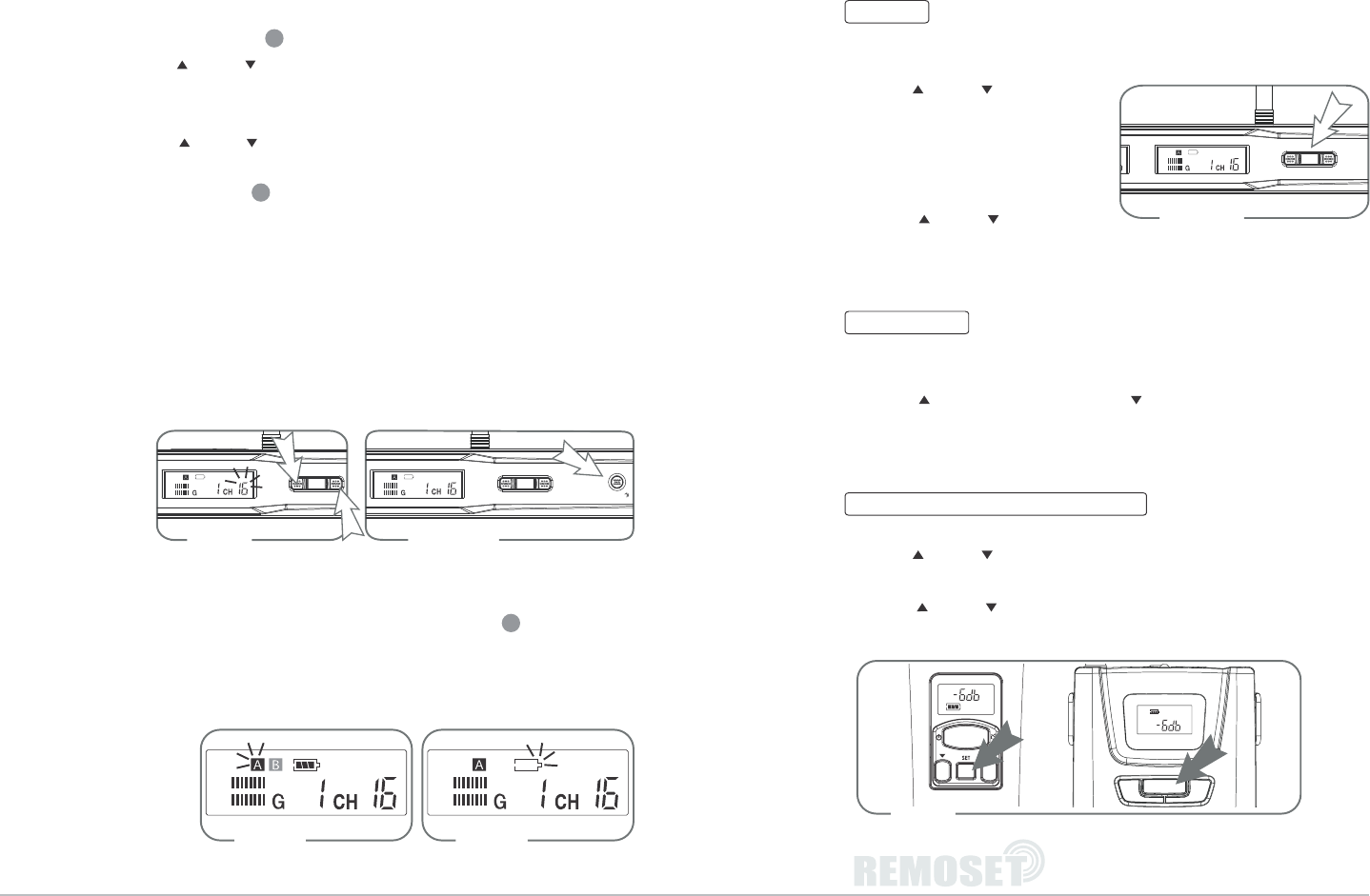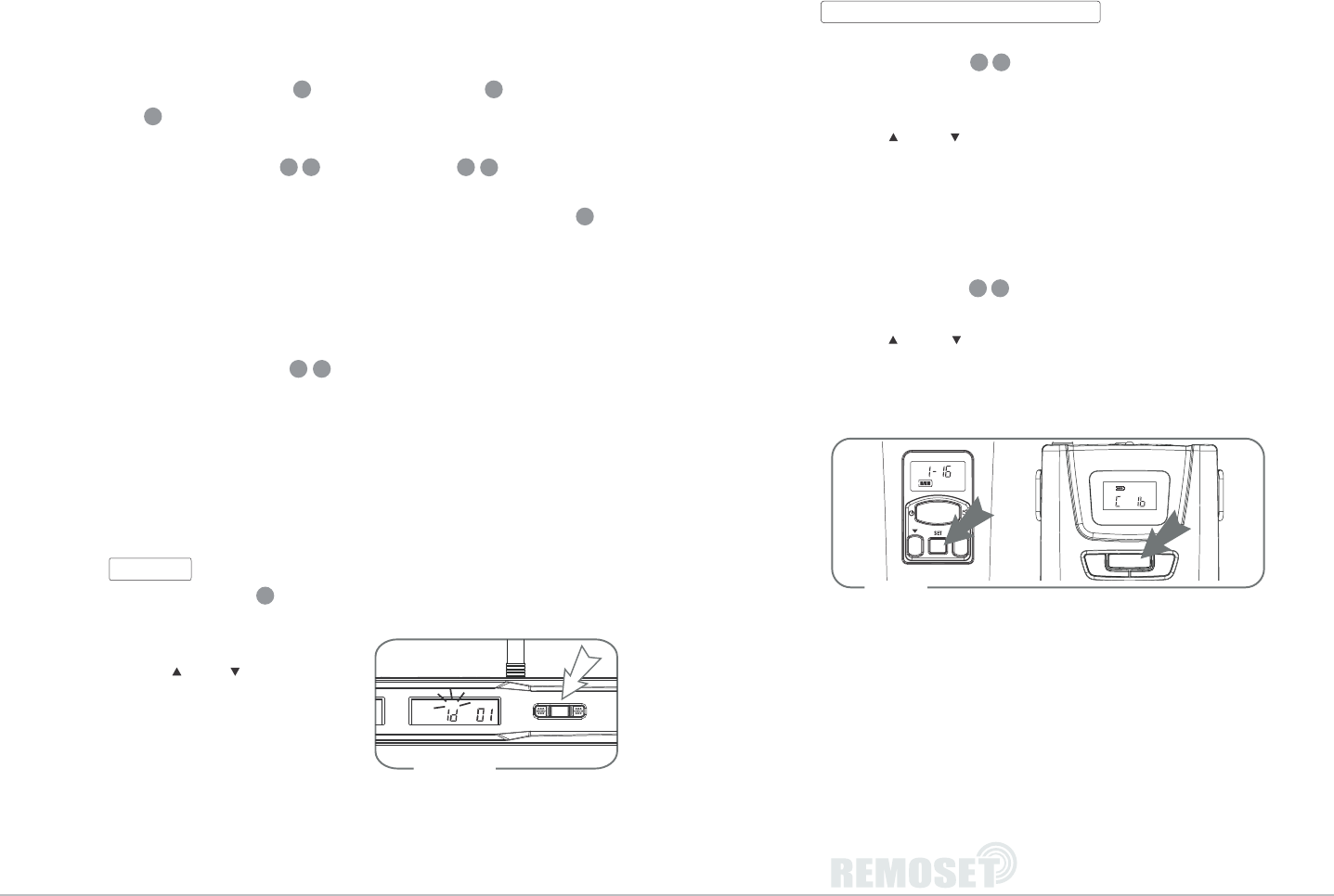 frequency and press the “REMOSET” Key; then the transmitter will automatically be