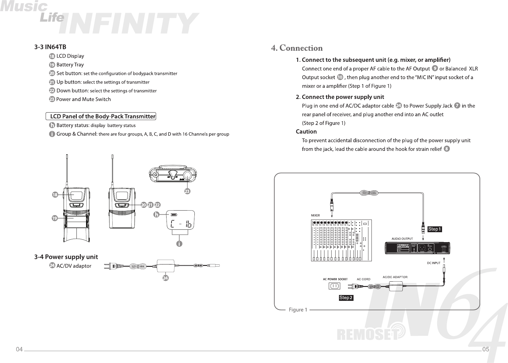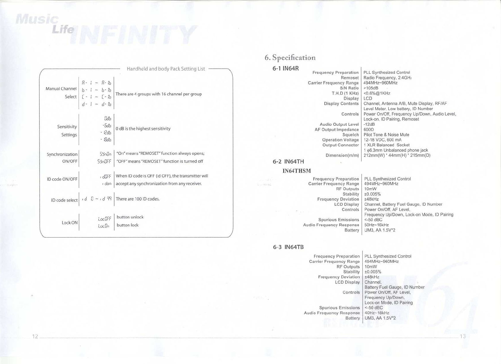 JTS PROFESSIONAL IN64TB UHF PLL single channel diversity wireless system User Manual IN 64 01