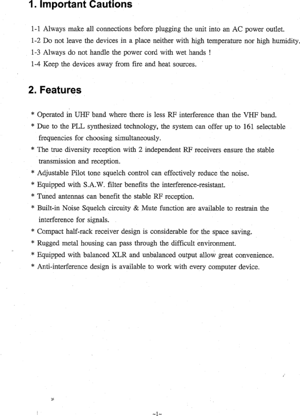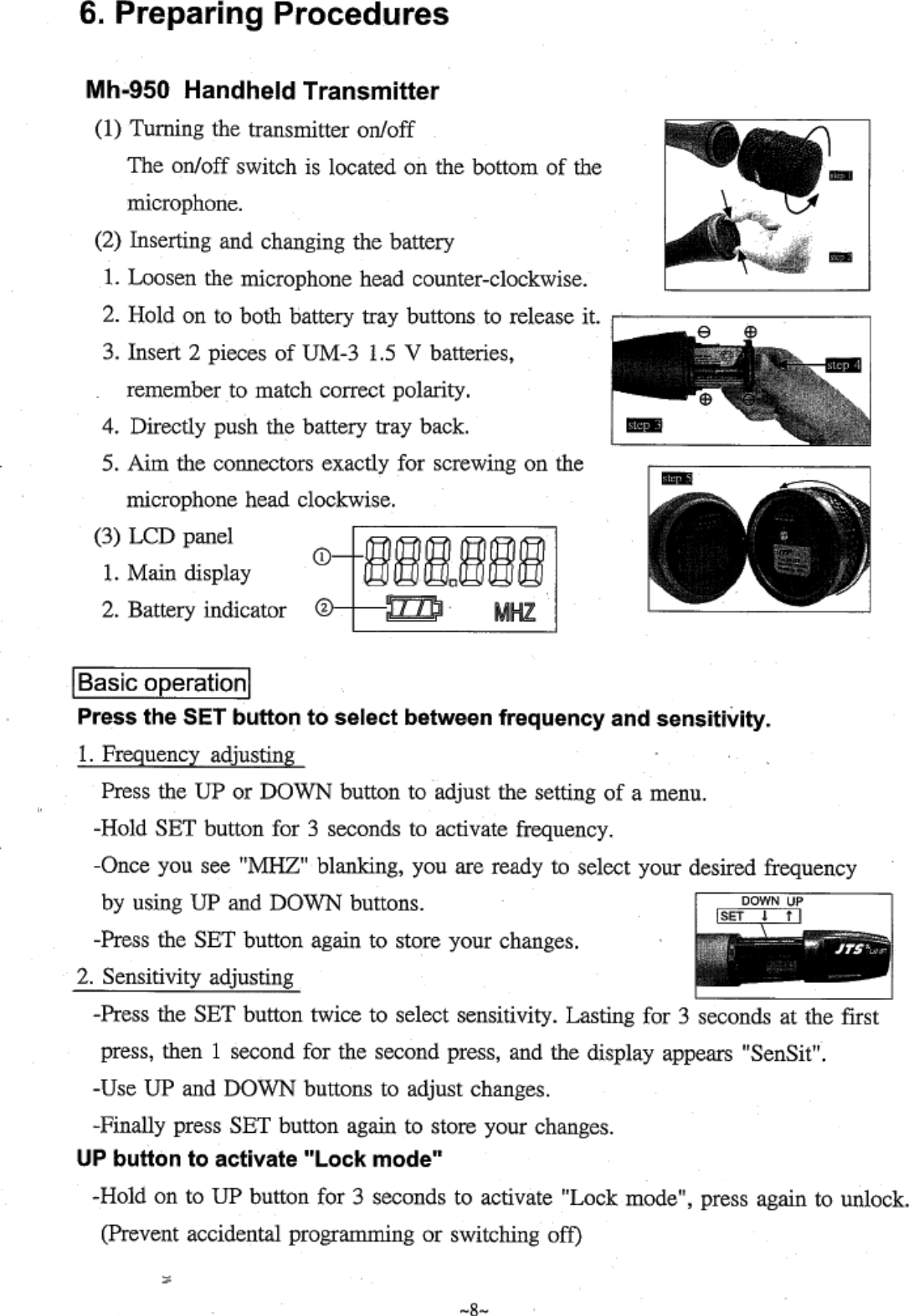 JTS PROFESSIONAL MH-950 Wireless Microphone User Manual 6