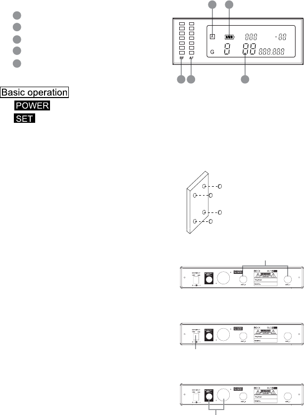 (1) Press the SET buon to select between frequency /group/ sensitivity / RF outputs.