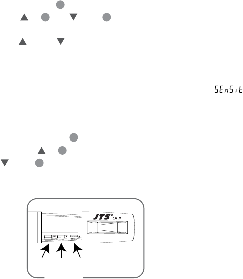 (4) Press the SET buon to select between frequency /group/ sensitivity / RF outputs.