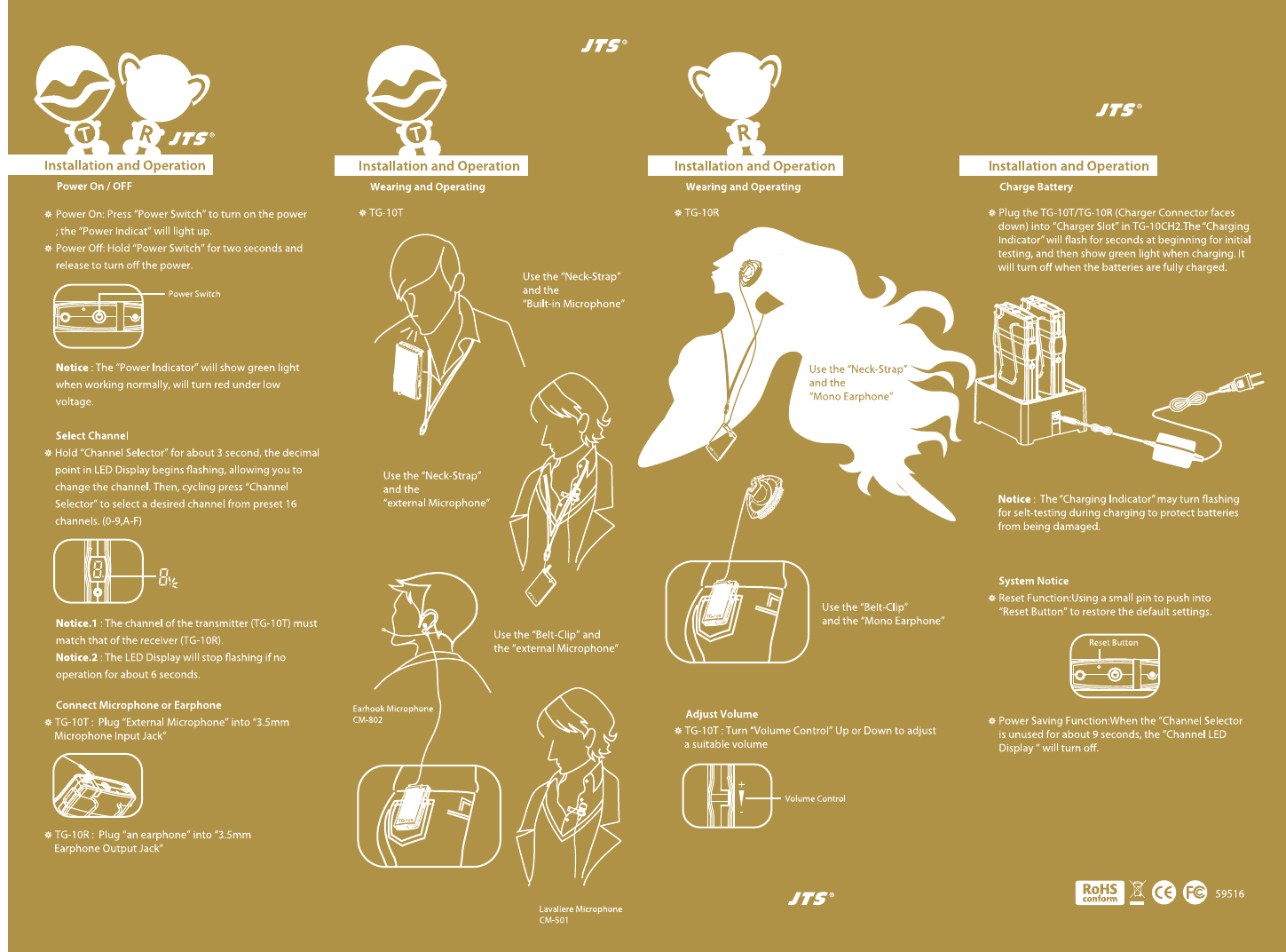 JTS PROFESSIONAL TG10T UHF PLL wireless tour guide transmitter User Manual JTS TG 10R 10T 10HC2 1