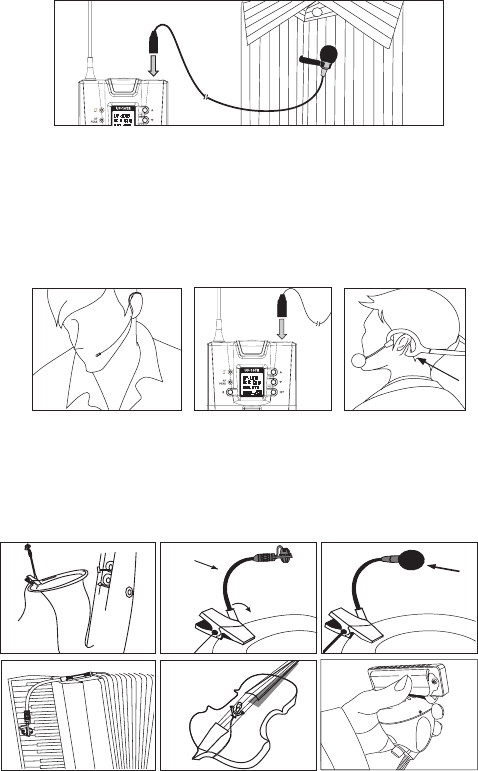 connector into input socket on the body-pack transmier.