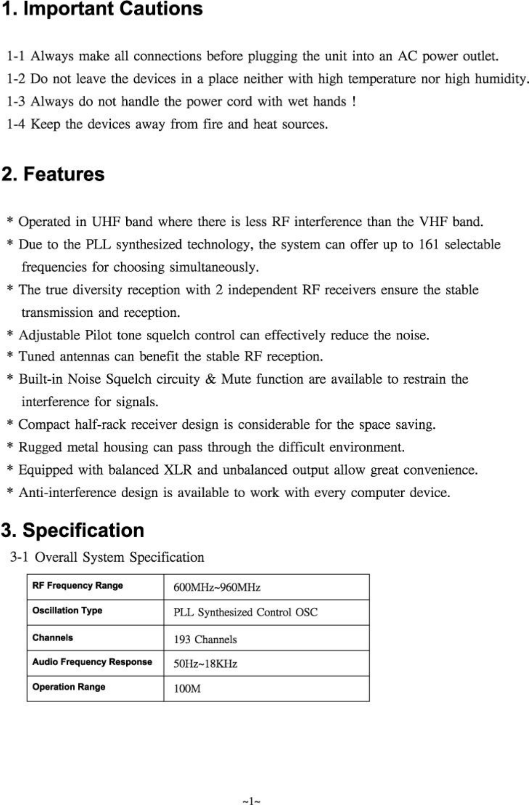 JTS Professional Co PT-950BF Body-pack Transmitter User Manual PT 950B UserMan 1