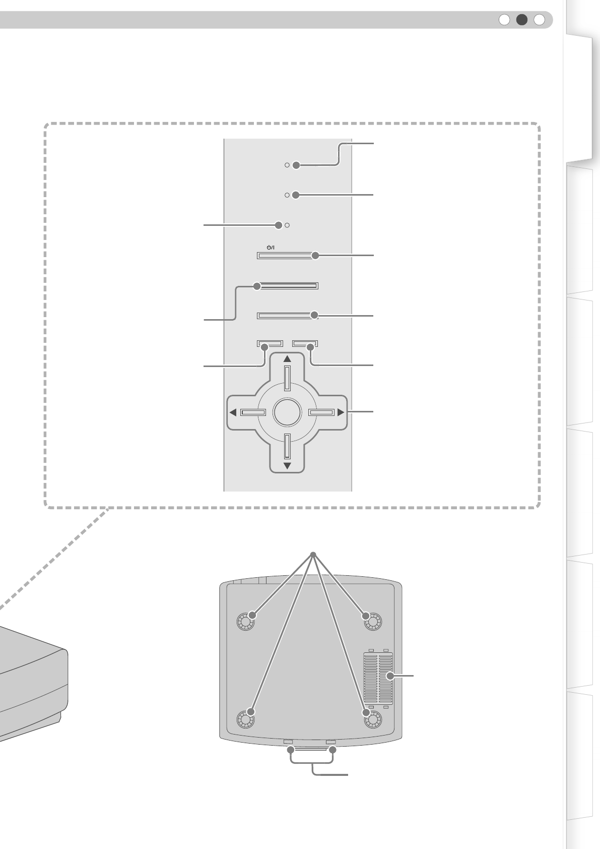 Cuando monte la unidad en un pedestal o en el techo, retire los 4 pies de apoyo de la superficie inferior y utilice los