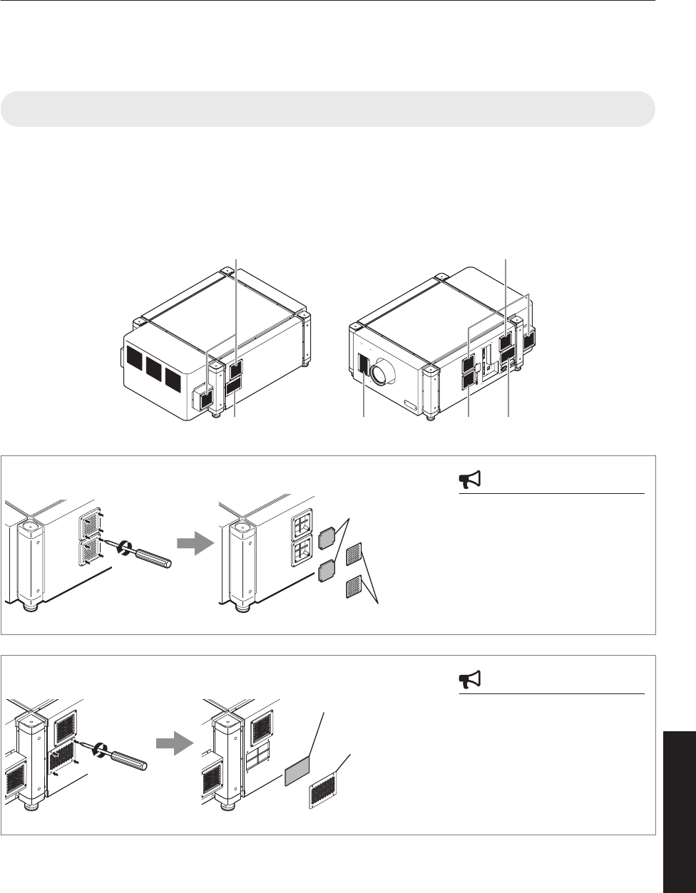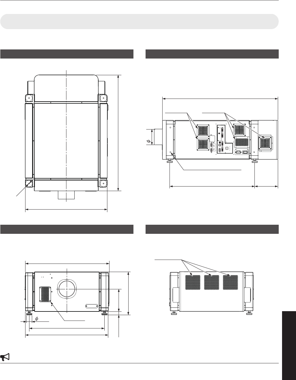0Using screws with dimensions other than those specified in the above diagram may cause the projector to drop or