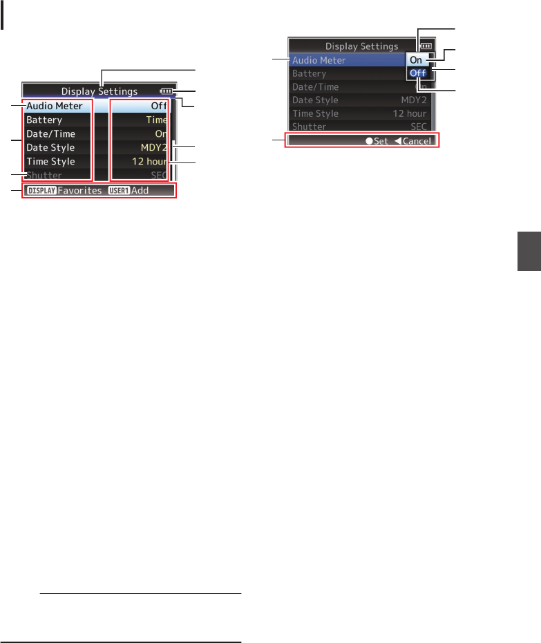 - Menu Display and Detailed Settings