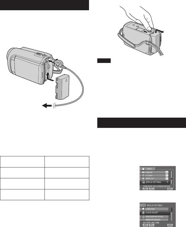 • Be sure to use JVC battery packs. If you use any other battery packs besides