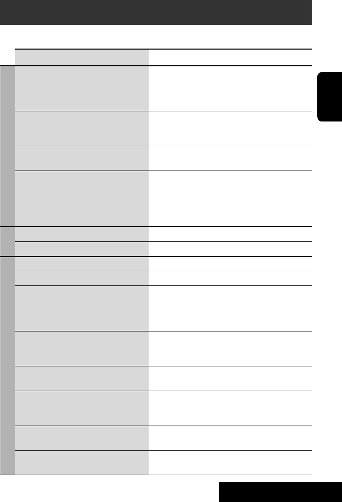 • Suara terdistorsi. Dinonaktifkan equalizer pada unit atau iPod/D.player.