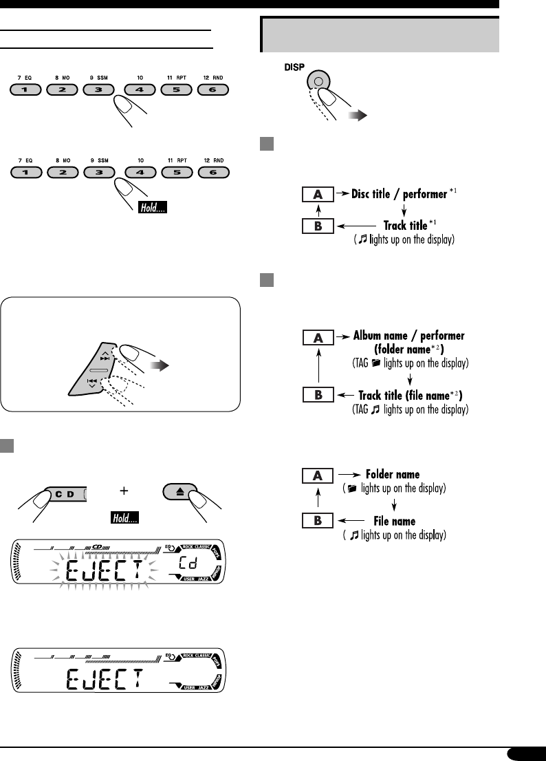 • “NO FILES” appears on the display. Insert a disc that contains MP3/WMA tracks.