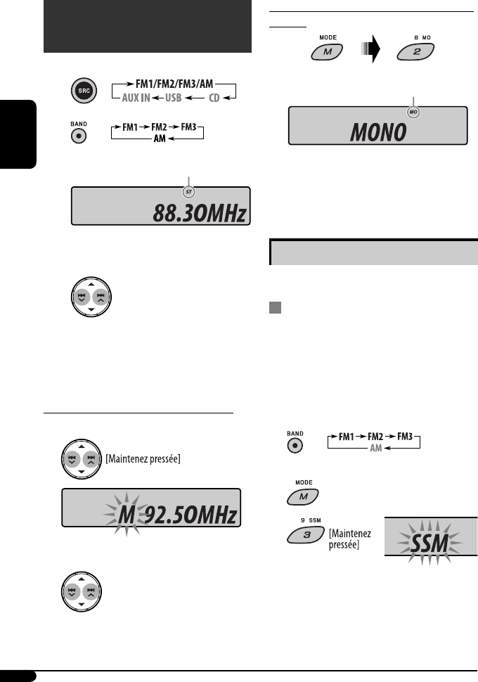 Plage de fréquences: FM: 87,5 MHz à 108,0 MHz