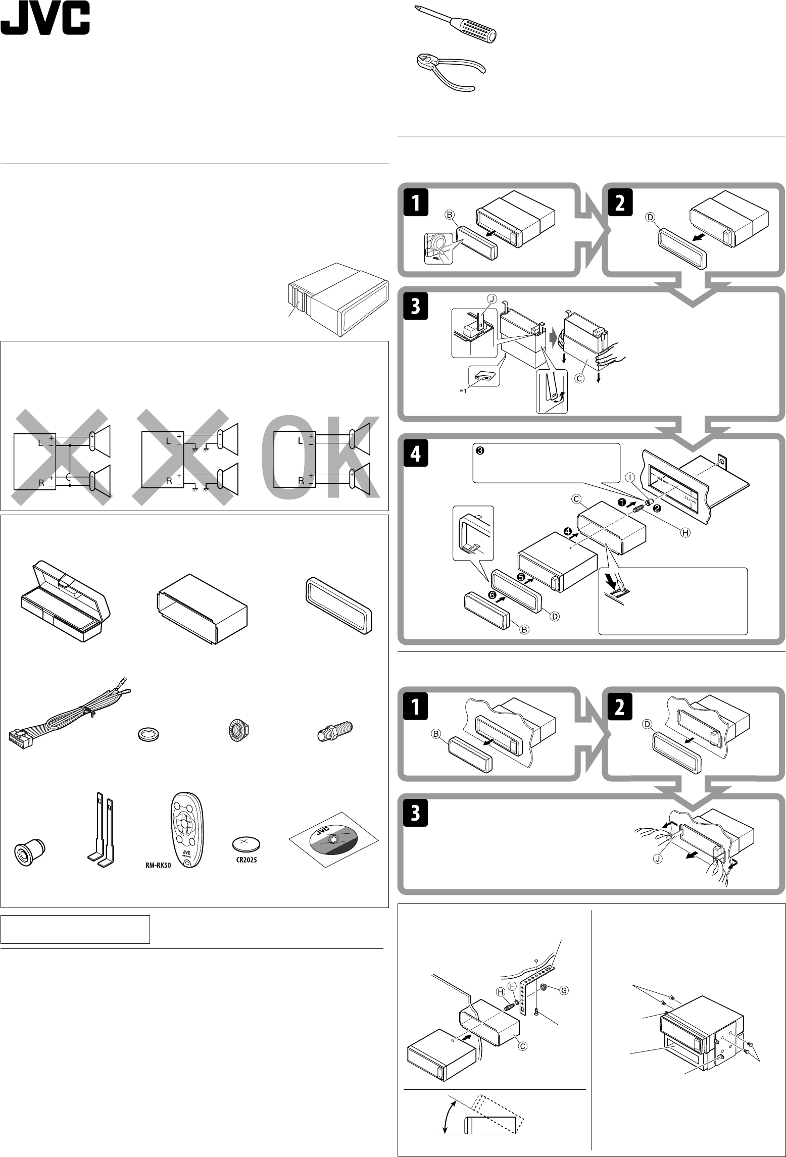 regarding installation kits, consult your JVC car audio dealer or a company supplying kits.