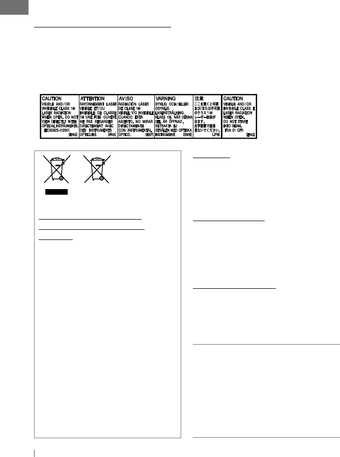 Abdeckungen. Nicht direkt mit optischen Instrumenten betrachten.