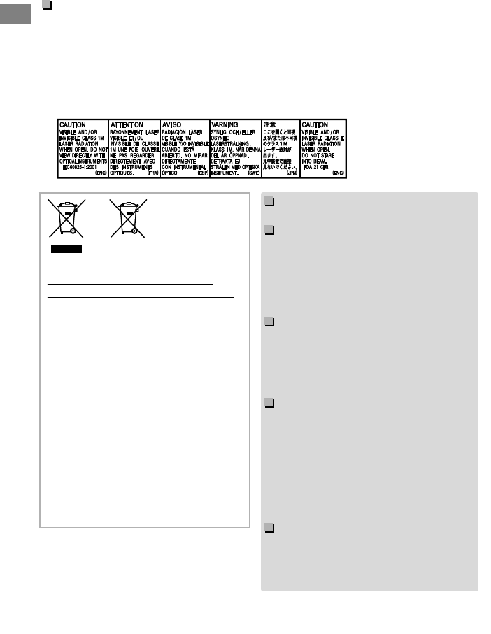 3. VOORZICHTIG: Zichtbare en/of onzichtbare klasse 1M laserstralen indien geopend.