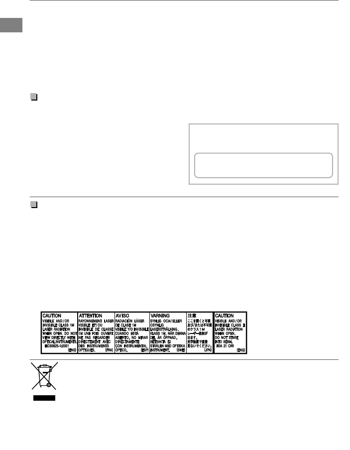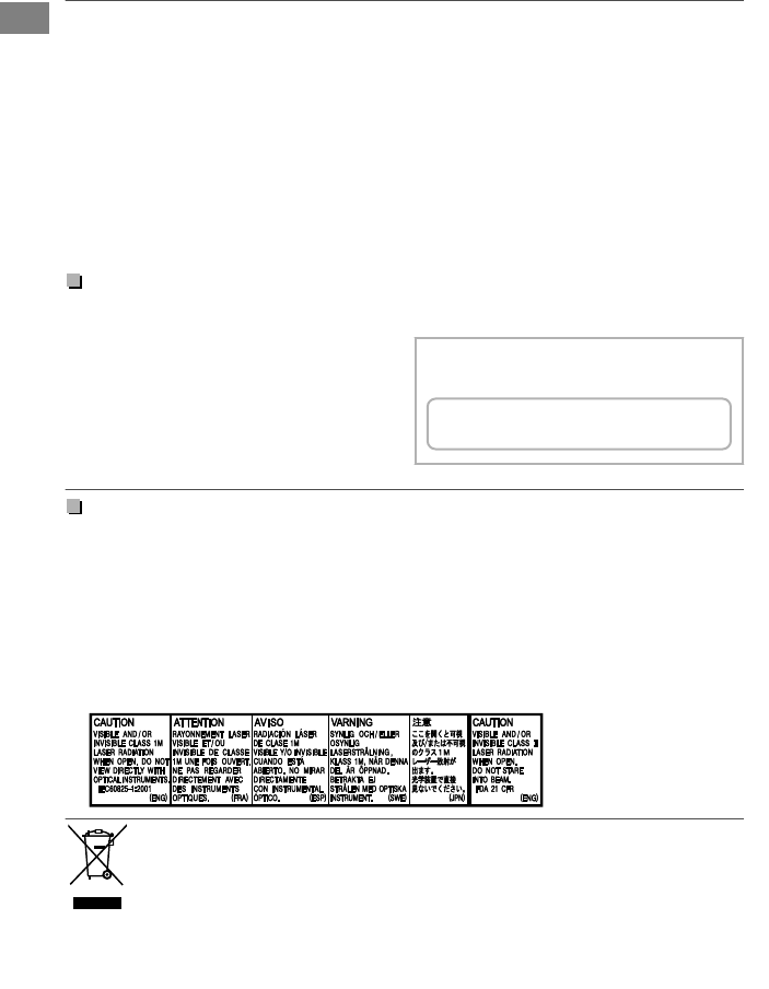 3. CAUTION: (For U.S.A.) Visible and/or invisible class II laser radiation when open. Do