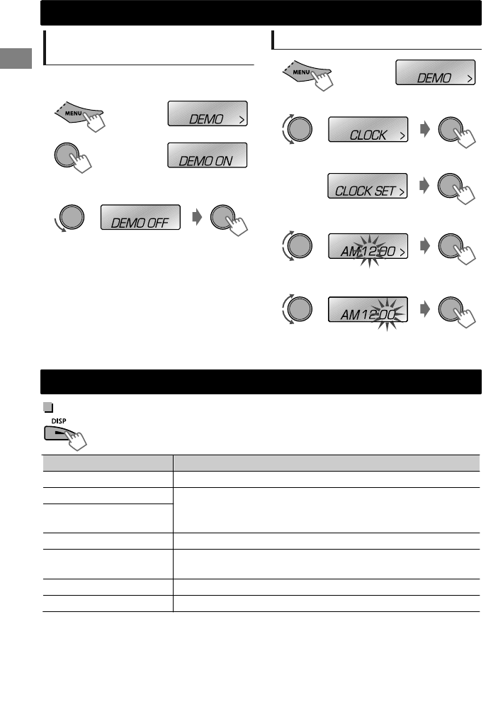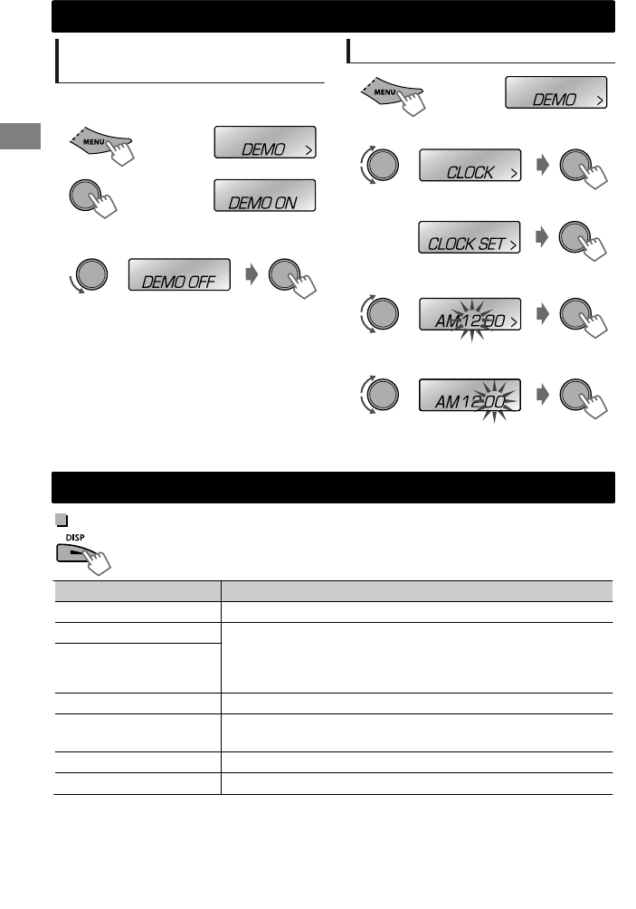 Pour annuler la démonstration des affichages, référez-vous à la page 4.
