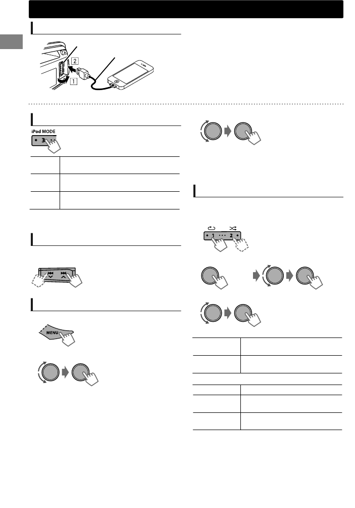 appareil. (USB : ' page 18) (iPod/iPhone : ' page 16)