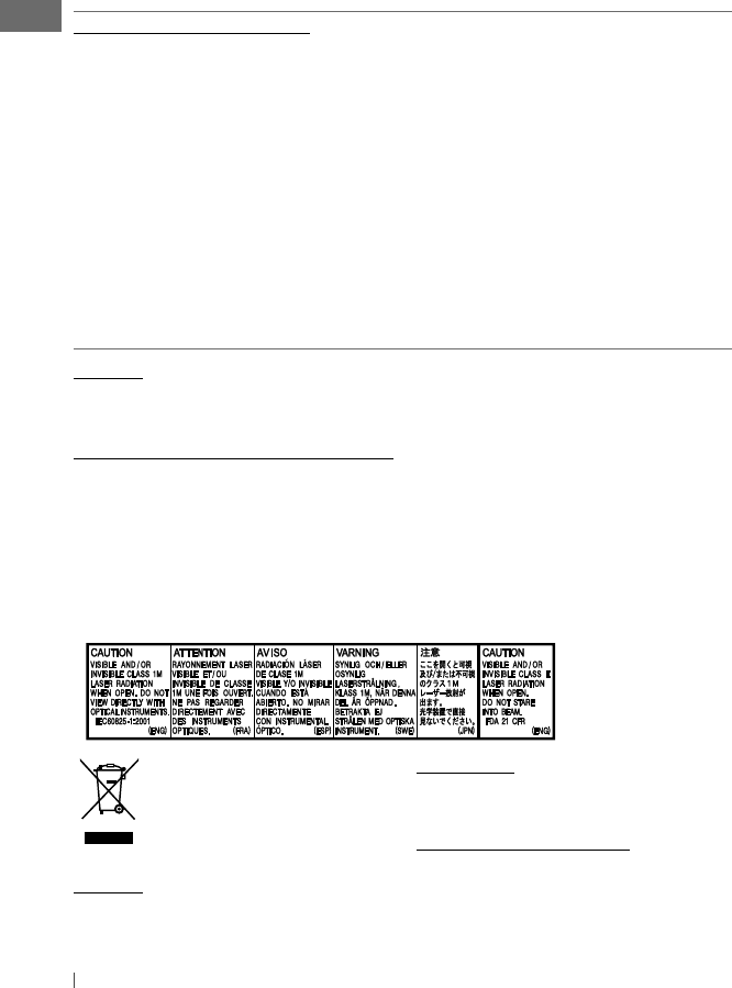 (For Canada) Visible and/or invisible class 1M laser radiation when open. Do not