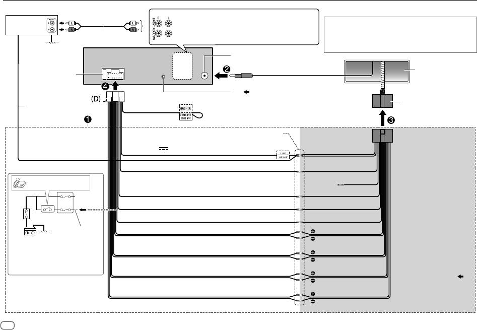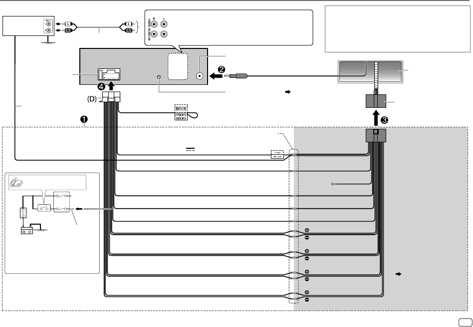• Depending on the types of cars, the antenna will automatically extend when you turn on the unit with the antenna control wire connected