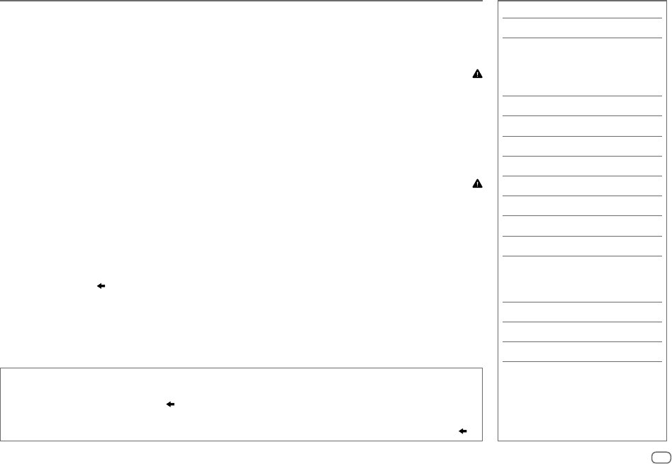 • Adjust the volume so that you can hear sounds outside the car to prevent accidents.