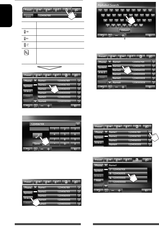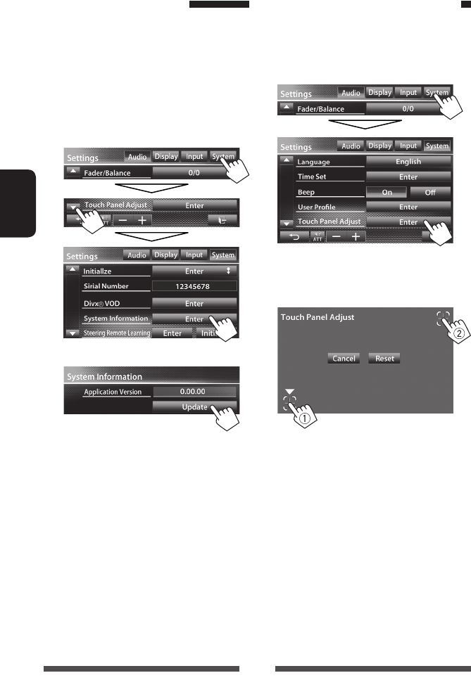 • Do not operate the touch panel using a ball-point