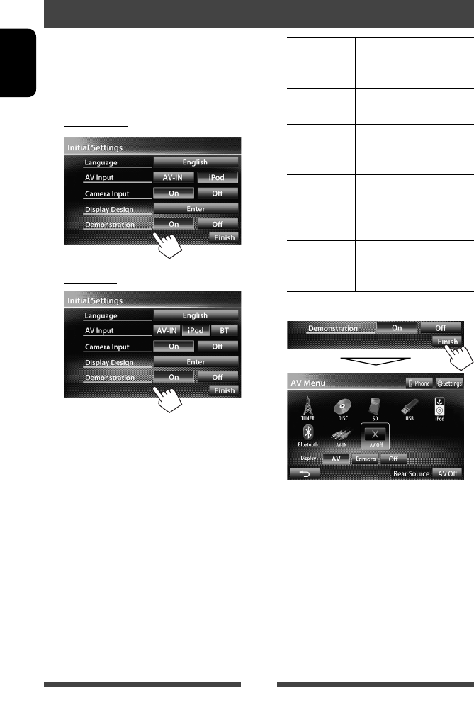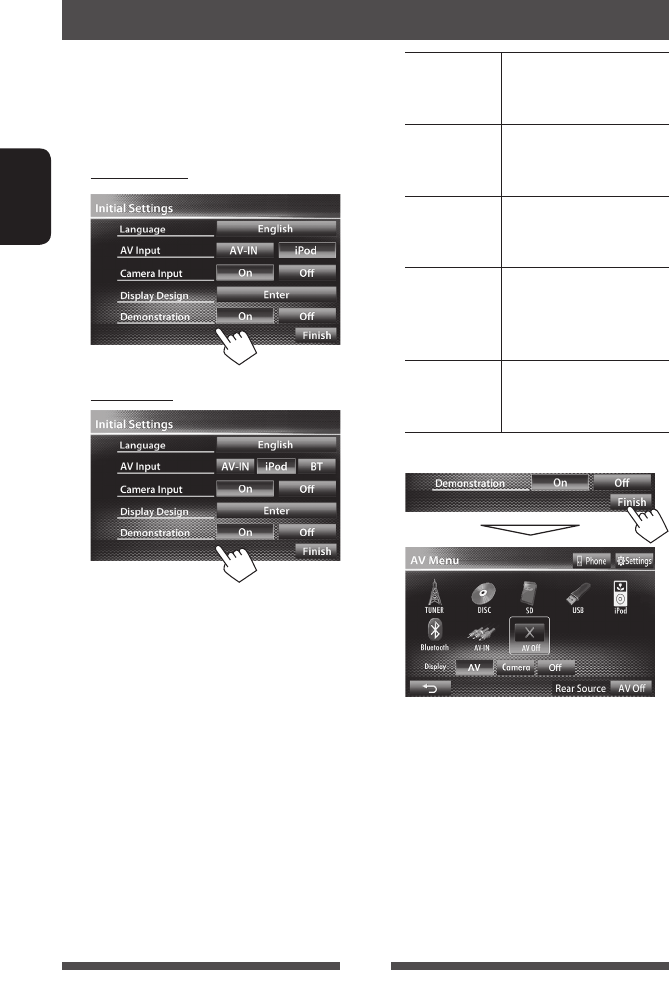 For canceling the display demonstration, see page 6.