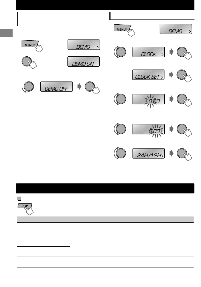 Pour annuler la démonstration des affichages, référez-vous à la page 4.
