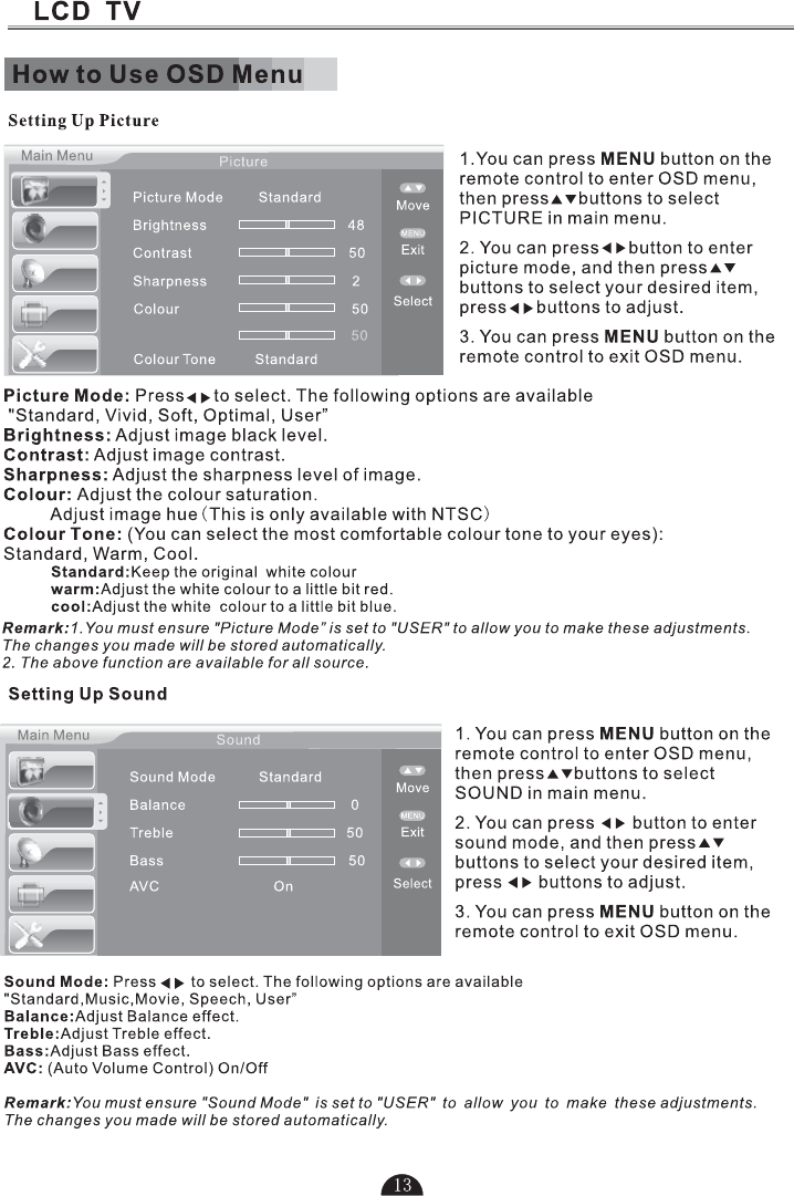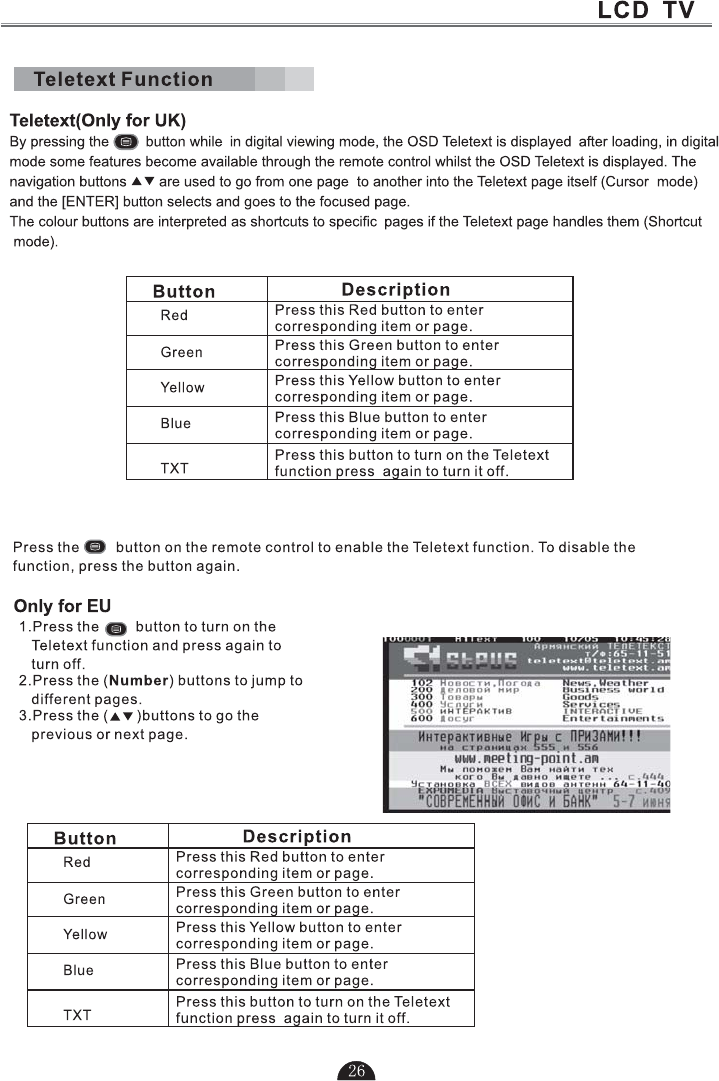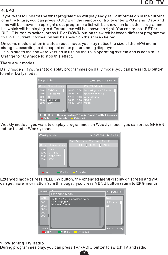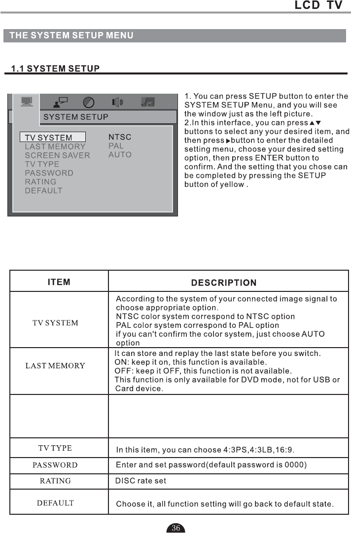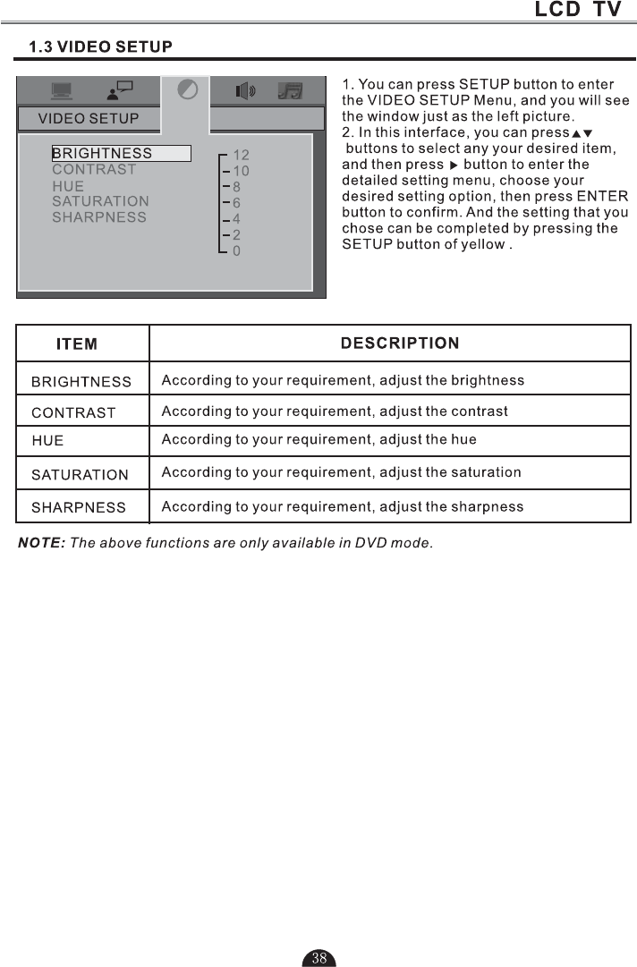 5.Press to select TV or all video input modes TV, AV,DTV S-VIDEO, SCART