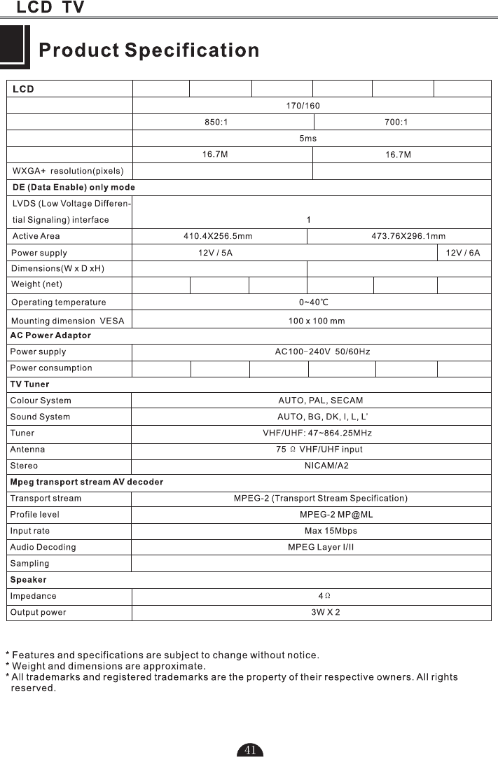 are trademarks of Dolby Laboratories. (Only for LT-19DK3- / LT-22DK3- model: )