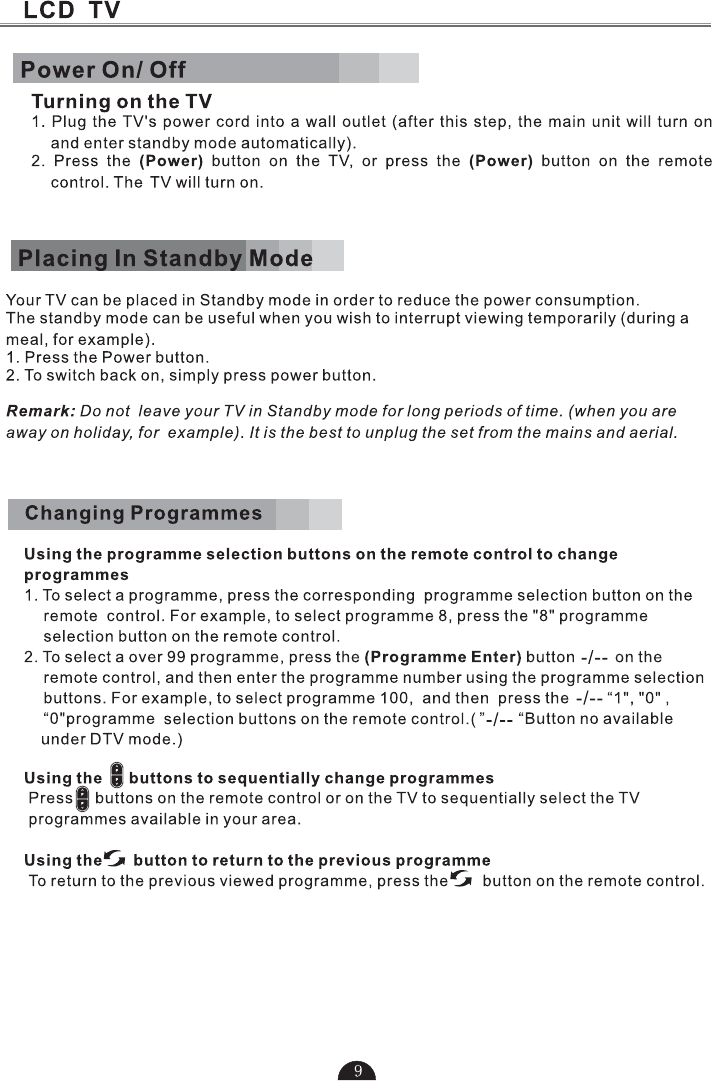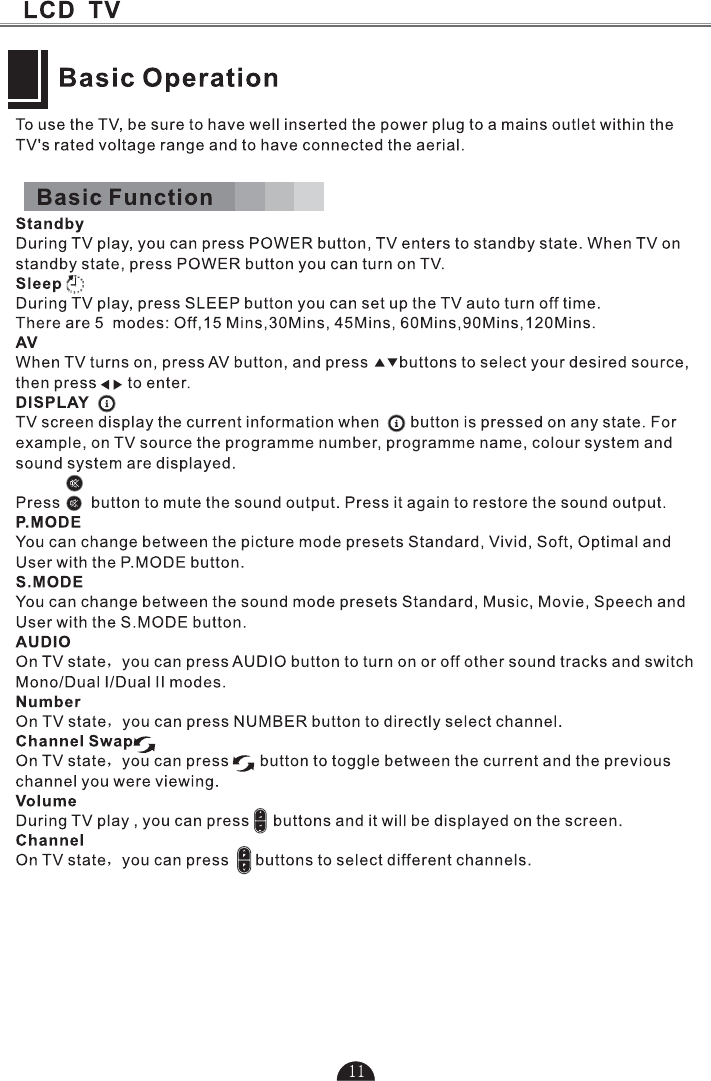 1.Press to turn TV on or turn to standby mode.